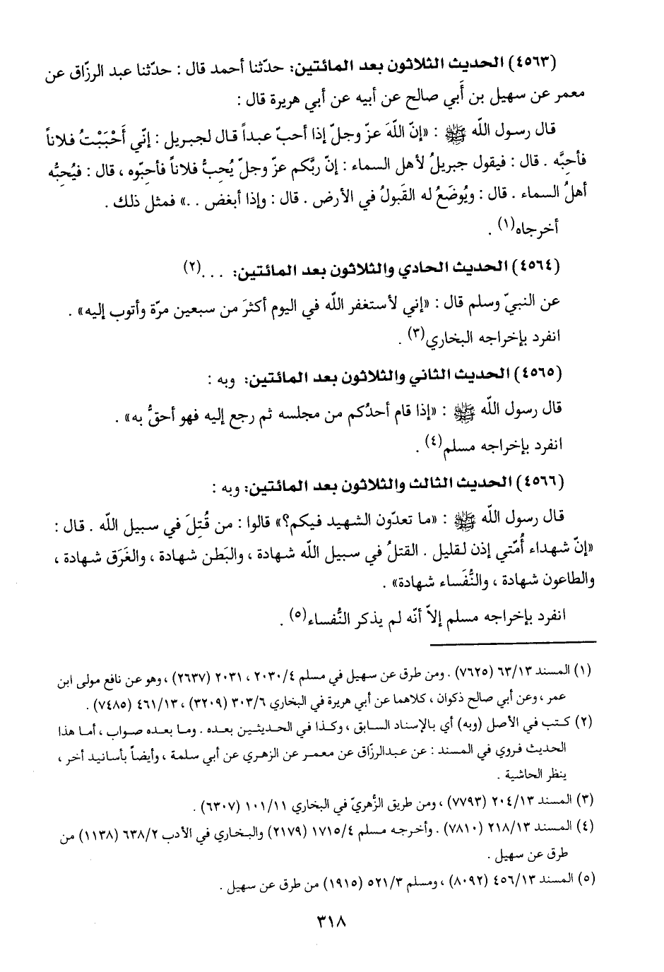 (٥) المسند ١٣/ ٤٥٦ (٨٠٩٢)، ومسلم ٣/ ٥٢١ (١٩١٥) من طرق عن سهيل.
