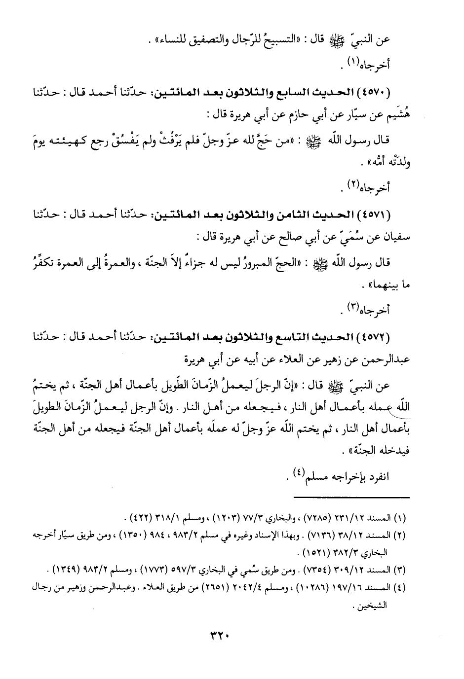 (٤) المسند ١٦/ ١٩٧ (١٠٢٨٦)، ومسلم ٤/ ٢٠٤٢ (٢٦٥١) من طريق العلاء. وعبد الرحمن وزهير من رجال الشيخين.