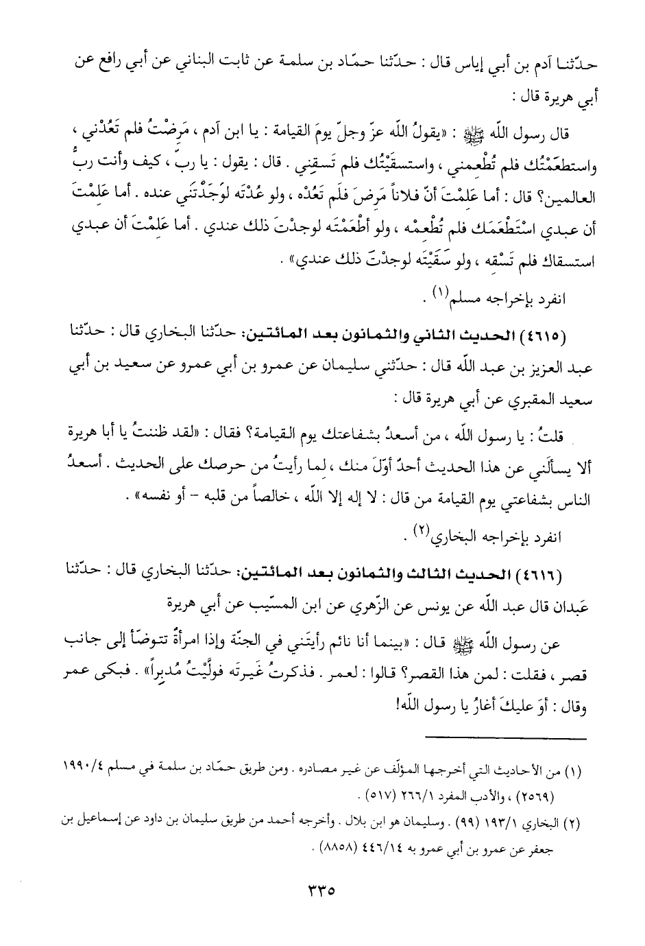 (٤٦١٥) الحديث الثاني والثمانون بعد المائتين: حدّثنا البخاري قال: حدّثنا عبد العزيز بن عبد اللَّه قال: حدّثني سليمان عن عمرو بن أبي عمرو عن سعيد بن أبي سعيد المقبري عن أبي هريرة قال: