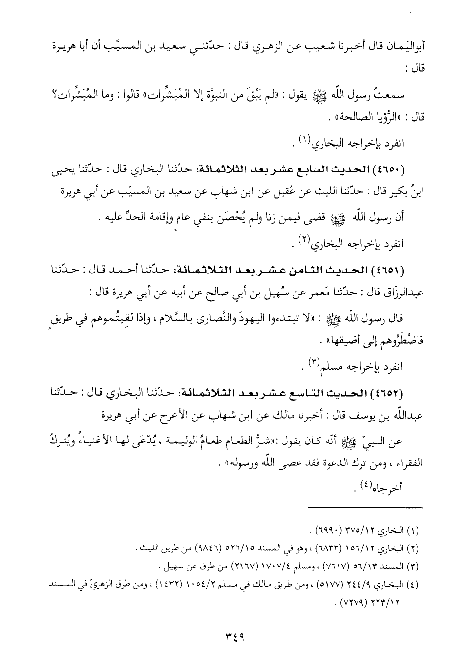 (٢) البخاري ١٢/ ١٥٦ (٦٨٣٣)، وهو في المسند ١٥/ ٥٢٦ (٩٨٤٦) من طريق الليث.
