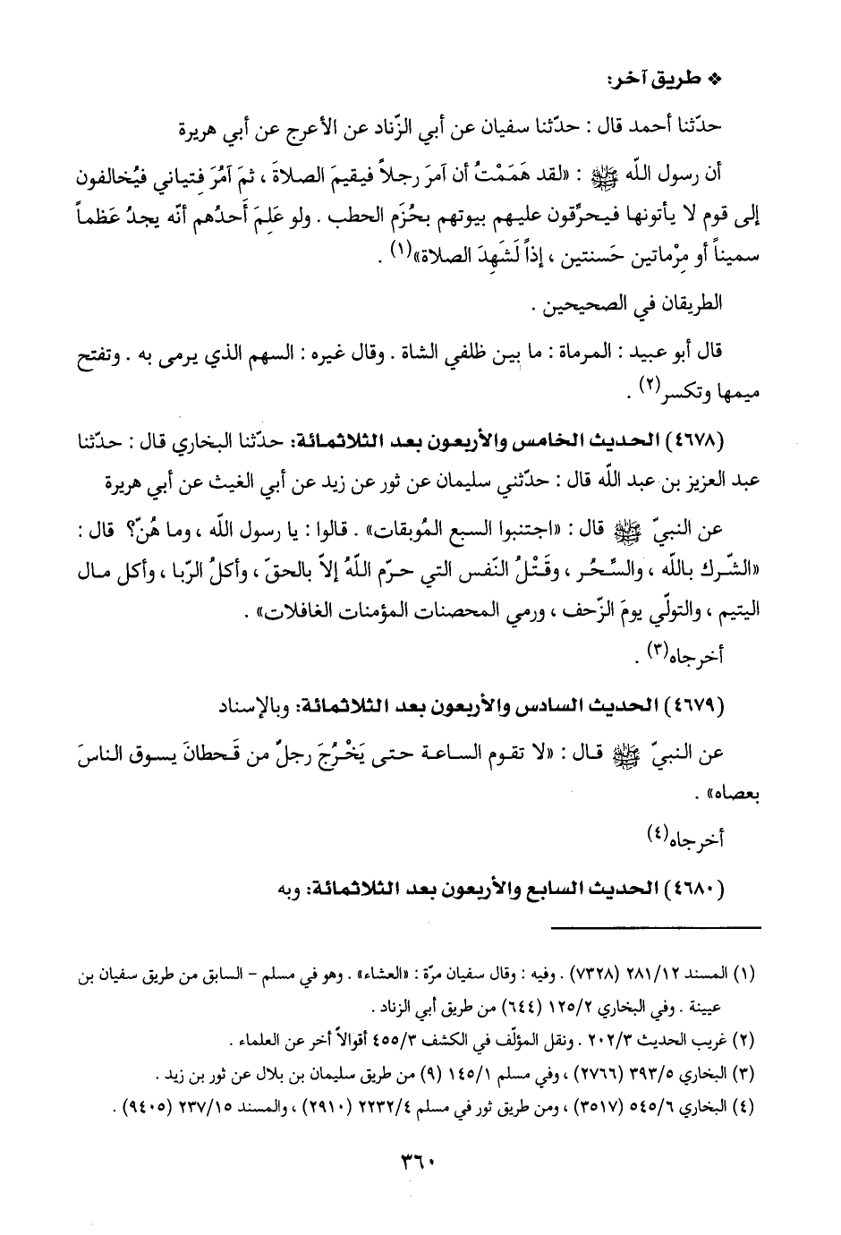 (٤٦٧٨) الحديث الخامس والأربعون بعد الثلاثمائة: حدّثنا البخاري قال: حدّثنا عبد العزيز بن عبد اللَّه قال: حدّثني سليمان عن ثور عن زيد عن أبي الغيث عن أبي هريرة: