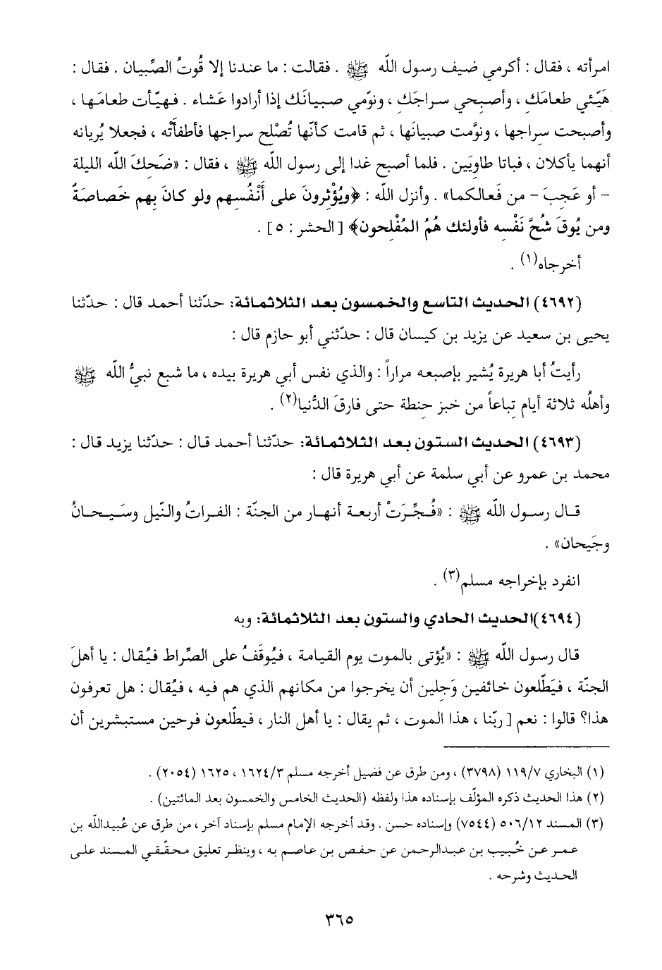 (٣) المسند ١٢/ ٥٠٦ (٧٥٤٤) وإسناده حسن. وقد أخرجه الإمام مسلم بإسناد آخر، من طرق عن عُبيد اللَّه بن عمر عن خُبيب بن عبد الرحمن عن حفص بن عاصم به، وينظر تعليق محقّقي المسند على الحديث وشرحه.