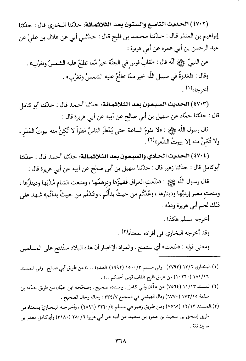 (٤٧٠٤) الحديث الحادي والسبعون بعد الثلاثمائة: حدّثنا أحمد قال: حدّثنا أبو كامل قال: حدّثنا زهير قال: حدّثنا سهيل بن أبي صالح عن أبيه عن أبي هريرة قال: