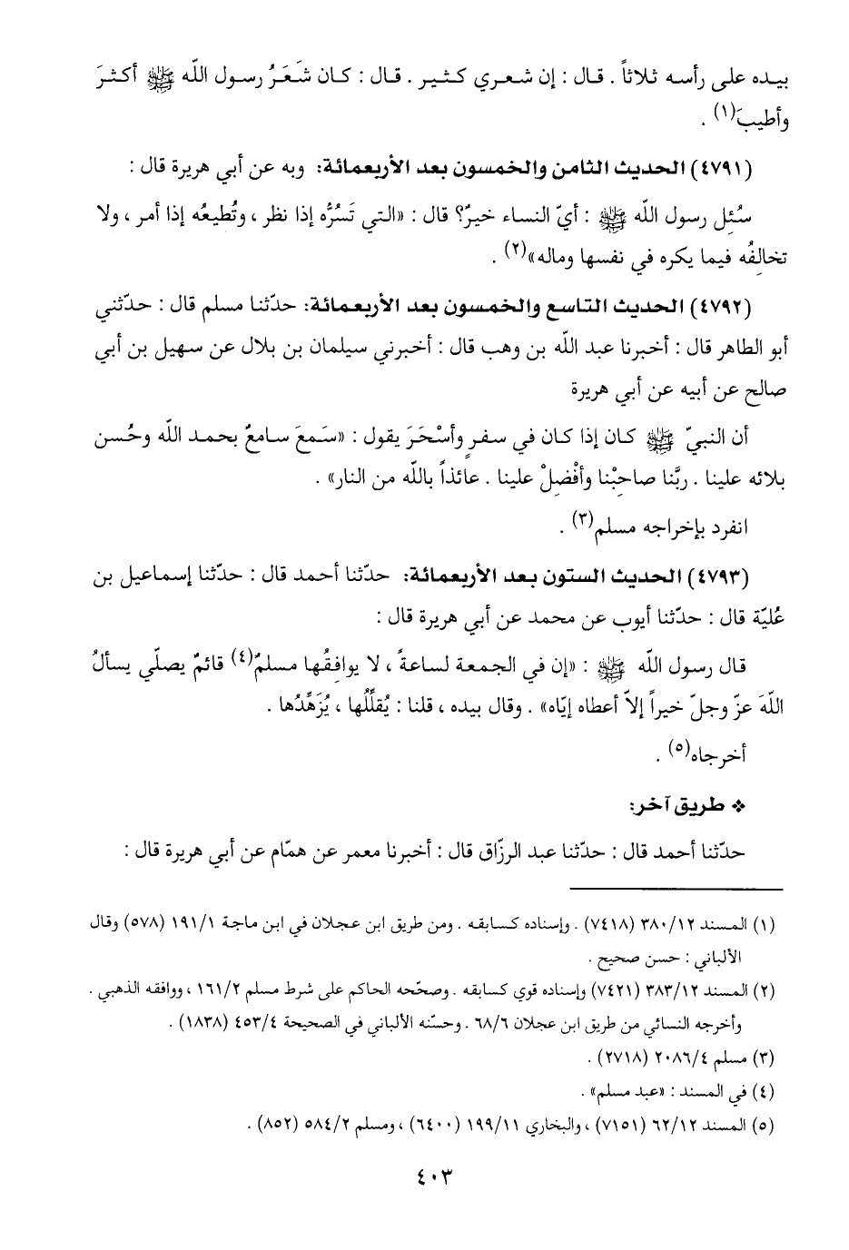 (٤٧٩٣) الحديث الستون بعد الأربعمائة: حدّثنا أحمد قال: حدّثنا إسماعيل بن عُليّة قال: حدّثنا أيوب عن محمد عن أبي هريرة قال: