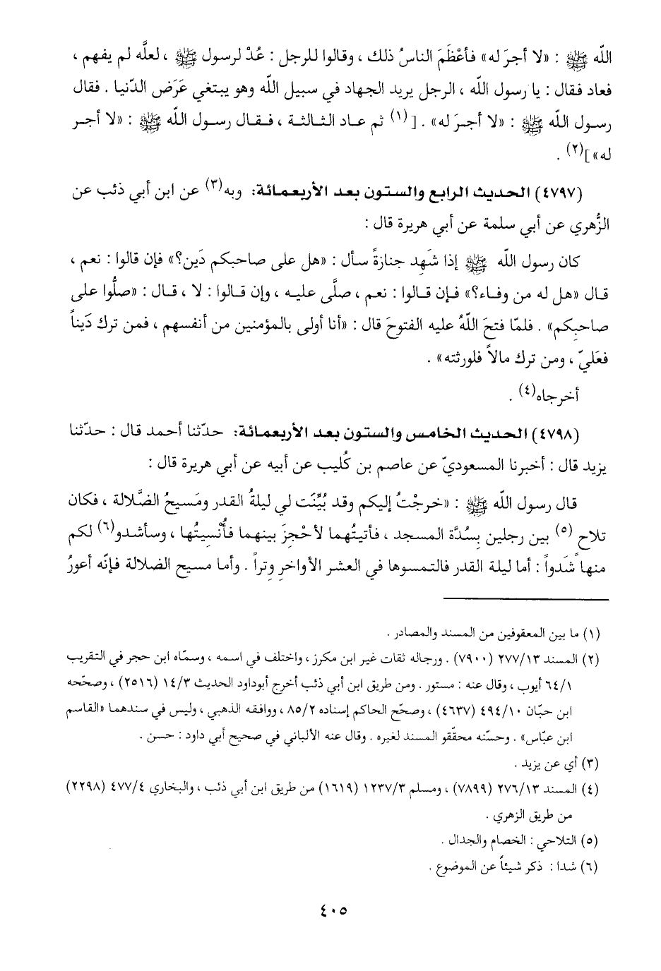(٤) المسند ١٣/ ٢٧٦ (٧٨٩٩)، ومسلم ٣/ ١٢٣٧ (١٦١٩) من طريق ابن أبي ذئب، والبخاري ٤/ ٤٧٧ (٢٢٩٨) من طريق الزهري.