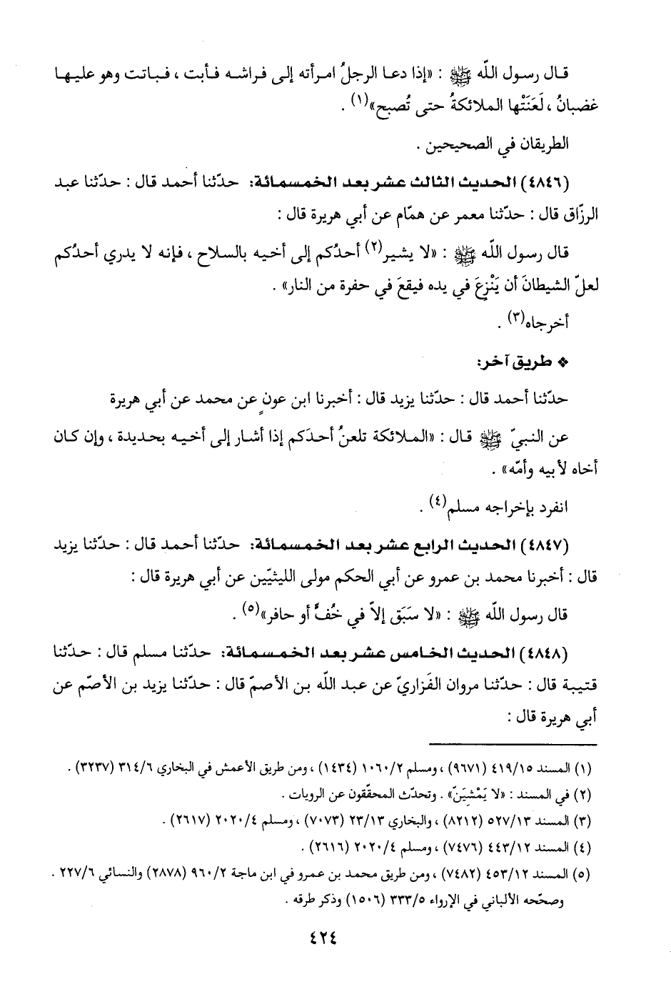 (٤٨٤٦) الحديث الثالث عشر بعد الخمسمائة: حدّثنا أحمد قال: حدّثنا عبد الرزّاق قال: حدّثنا معمر عن همّام عن أبي هريرة قال:
