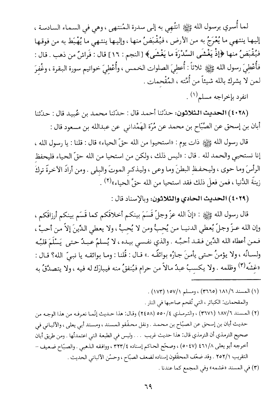 (٤٠٢٨) الحديث الثلاثون: حدّثنا أحمد قال: حدّثنا محمد بن عُبيد قال: حدّثنا أبان بن إسحق عن الصَّبّاح بن محمد عن مُرّة الهَمْداني عن عبد اللَّه بن مسعود قال: