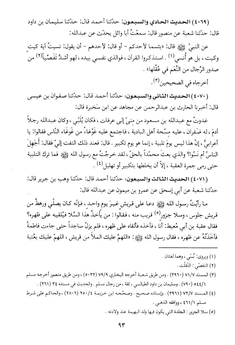 (٤٠٦٩) الحديث الحادي والسبعون: حدّثنا أحمد قال: حدّثنا سليمان بن داود قال: حدّثنا شعبة عن منصور قال: سمعْتُ أبا وائل يحدّث عن عبد اللَّه: