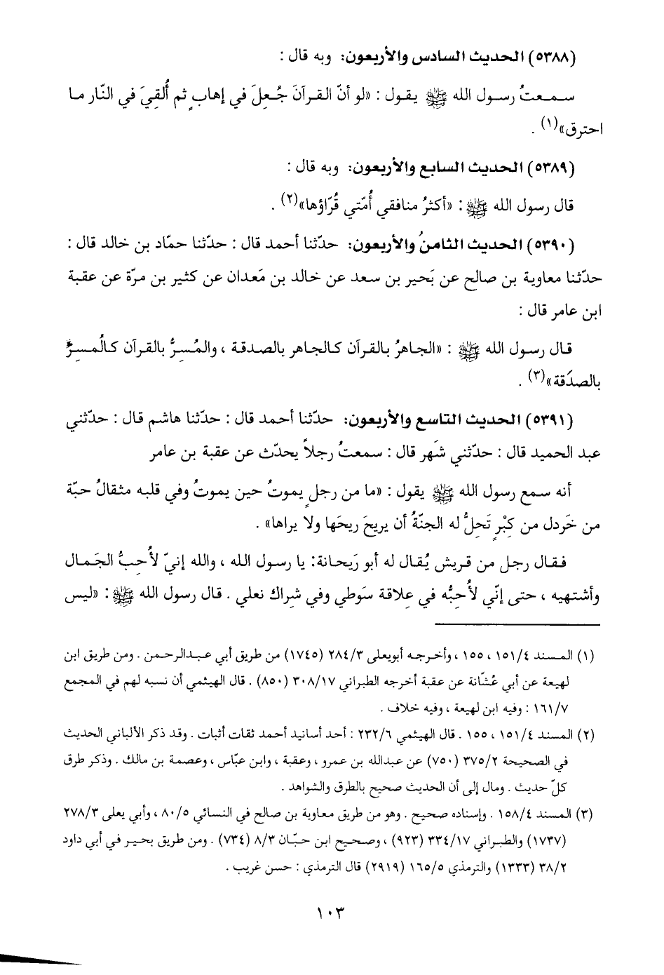 (٥٣٩٠) الحديث الثامنُ والأربعون: حدّثنا أحمد قال: حدّثنا حمّاد بن خالد قال: حدّثنا معاوية بن صالح عن بَحير بن سعد عن خالد بن مَعدان عن كثير بن مرّة عن عقبة ابن عامر قال: