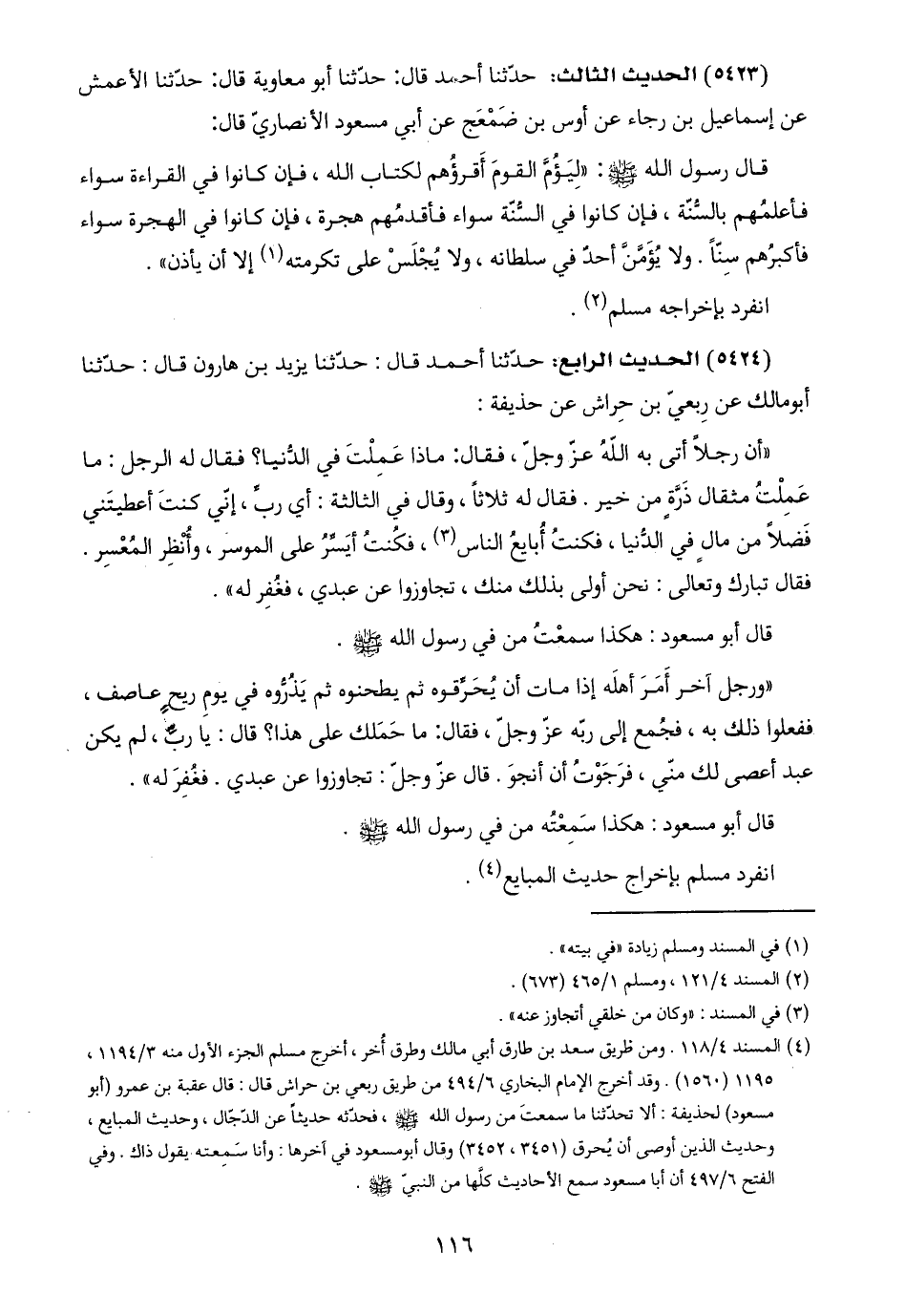 (٥٤٢٣) الحديث الثالث: حدّثنا أحمد قال: حدّثنا أبو معاوية قال: حدّثنا الأعمش عن إسماعيل بن رجاء عن أوس بن ضَمْعَج عن أبي مسعود الأنصاريّ قال: