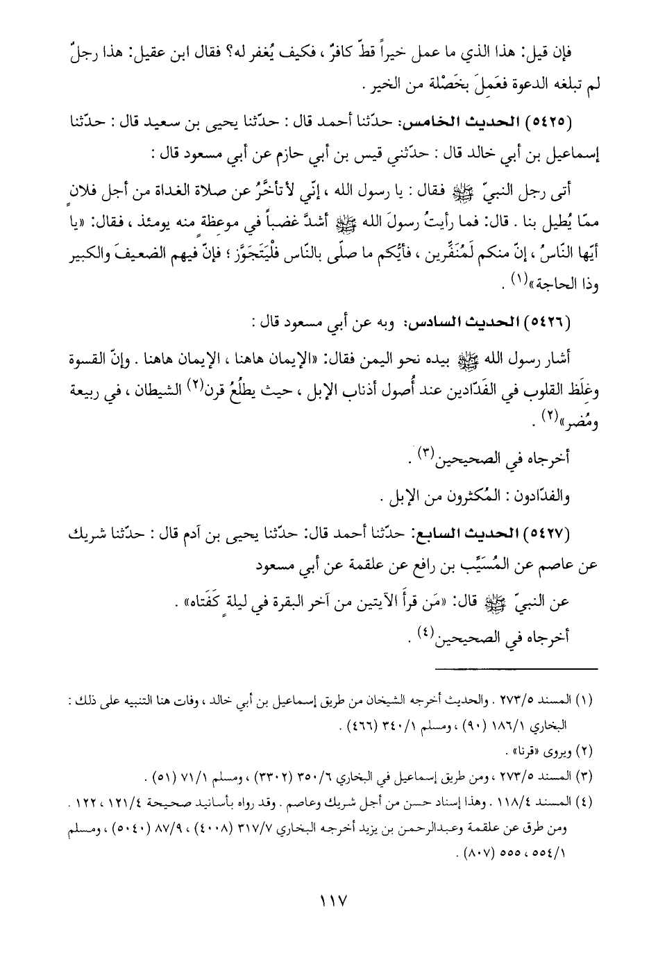 (٥٤٢٥) الحديث الخامس: حدّثنا أحمد قال: حدّثنا يحيى بن سعيد قال: حدّثنا إسماعيل بن أبي خالد قال: حدّثني قيس بن أبي حازم عن أبي مسعود قال: