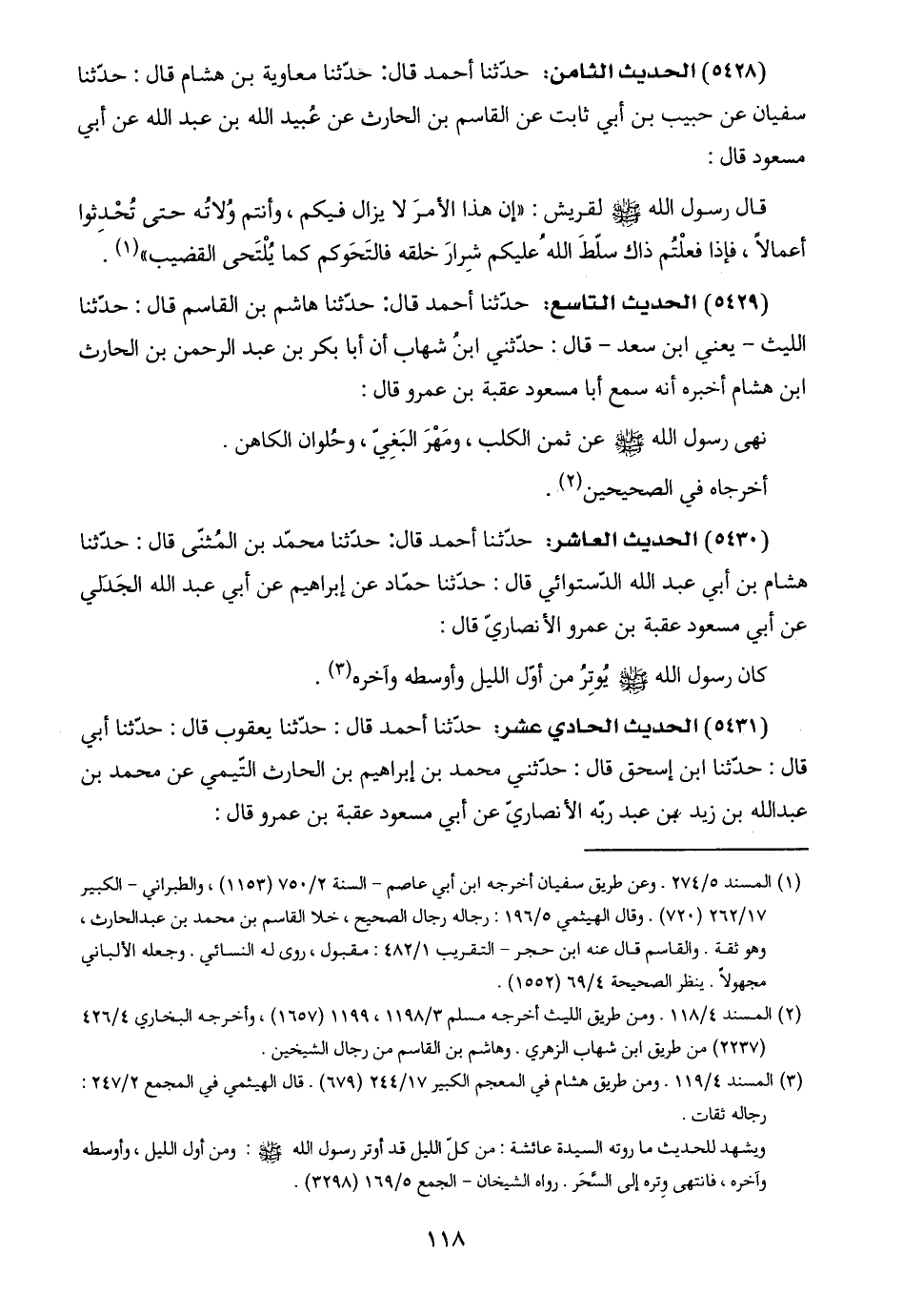 (٥٤٢٨) الحديث الثامن: حدّثنا أحمد قال: حدّثنا معاوية بن هشام قال: حدّثنا سفيان عن حبيب بن أبي ثابت عن القاسم بن الحارث عن عُبيد اللَّه بن عبد اللَّه عن أبي مسعود قال: