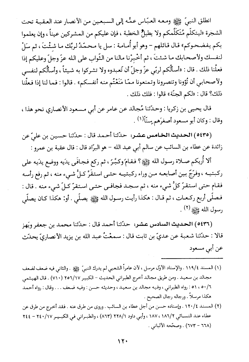 (٥٤٣٥) الحديث الخامس عشر: حدّثنا أحمد قال: حدّثنا حسين بن عليّ عن زائدة عن عطاء بن السائب عن سالم أبي عبد اللَّه - هو البرّاد قال: قال عقبة بن عمرو: