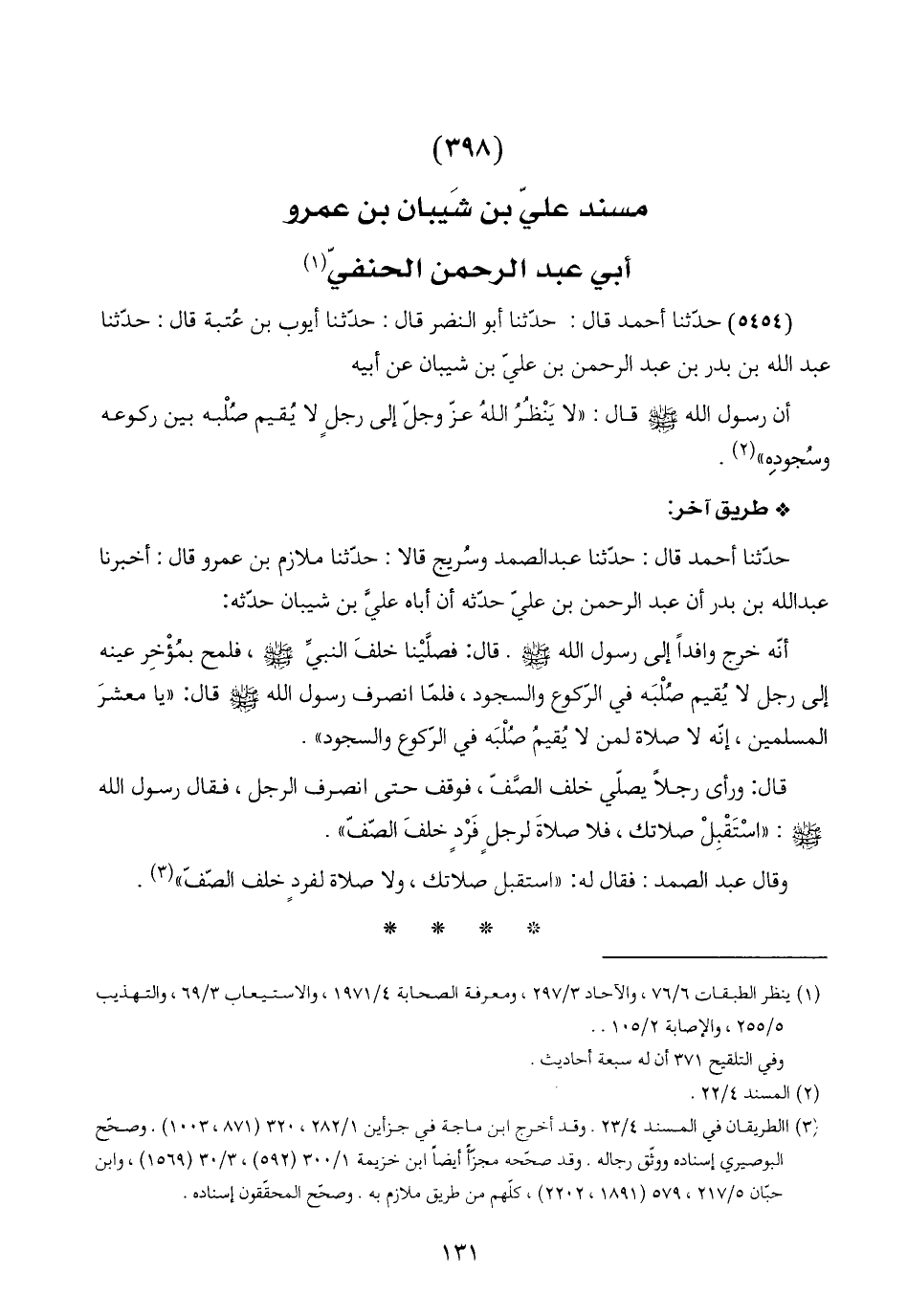 (٣٩٨) مسند عليّ بن شَيبان بن عمرو أبي عبد الرحمن الحنفيّ (١)