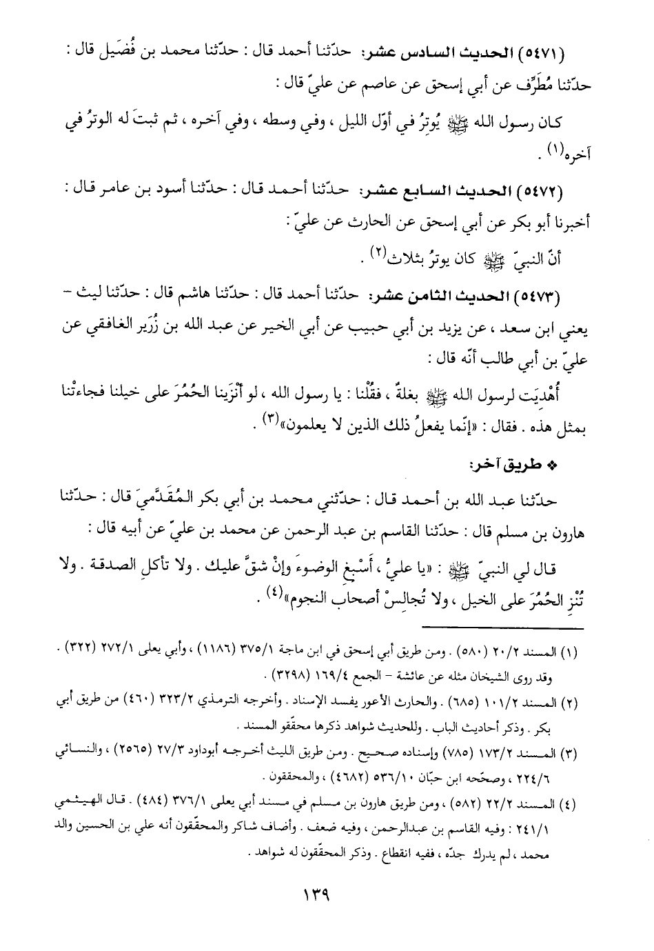 (٥٤٧١) الحديث السادس عشر: حدّثنا أحمد قال: حدّثنا محمد بن فُضَيل قال: حدّثنا مُطَرِّف عن أبي إسحق عن عاصم عن عليّ قال: