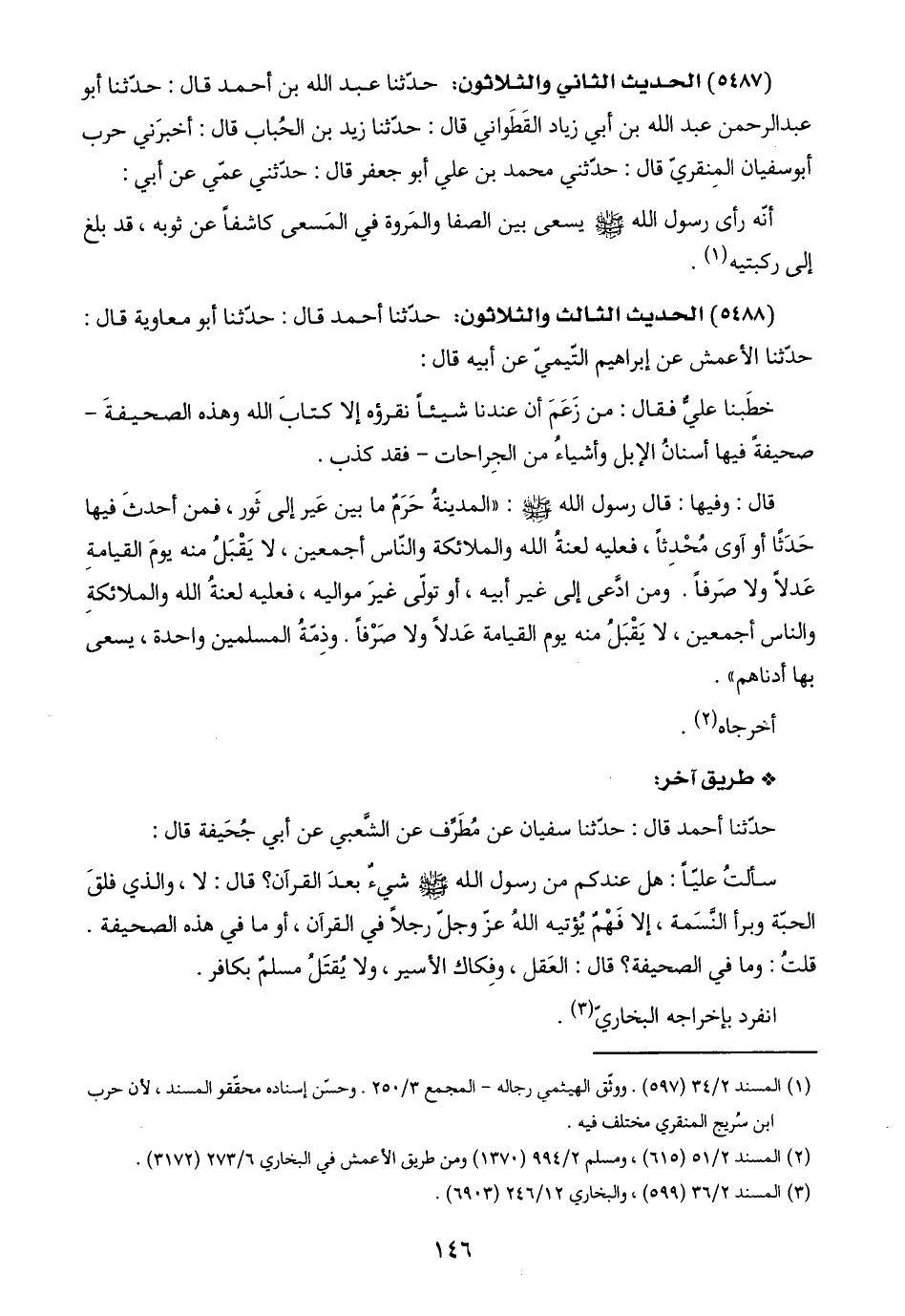 (٥٤٨٧) الحديث الثاني والثلاثون: حدّثنا عبد اللَّه بن أحمد قال: حدّثنا أبو عبد الرحمن عبد اللَّه بن أبي زياد القَطَواني قال: حدّثنا زيد بن الحُباب قال: أخبرَني حرب أبو سفيان المِنقريّ قال: حدّثني محمد بن عليّ أبو جعفر قال: حدّثني عمّي عن أبي: