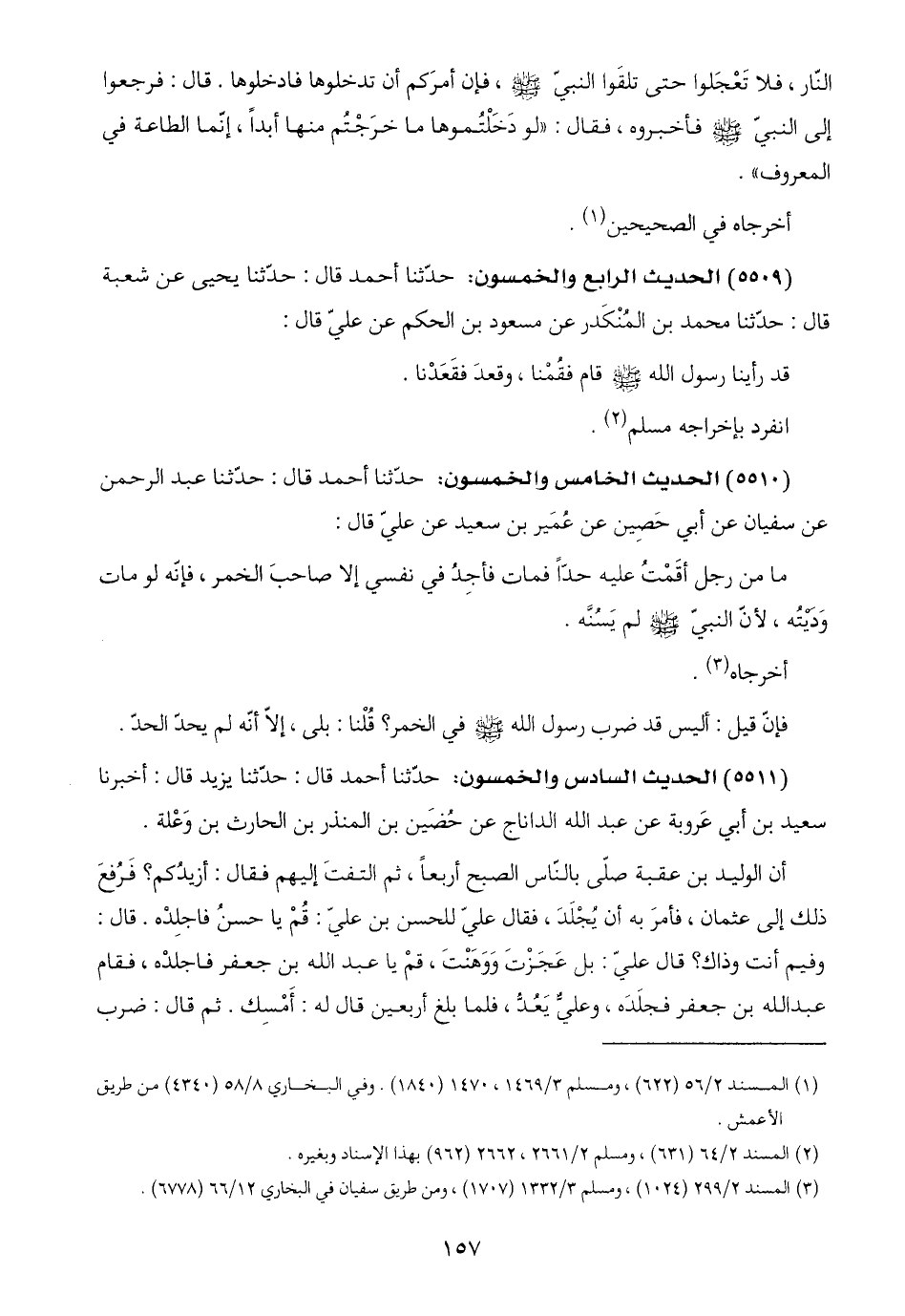 (٣) المسند ٢/ ٢٩٩ (١٠٢٤)، ومسلم ٣/ ١٣٣٢ (١٧٠٧)، ومن طريق سفيان في البخاري ١٢/ ٦٦ (٦٧٧٨).