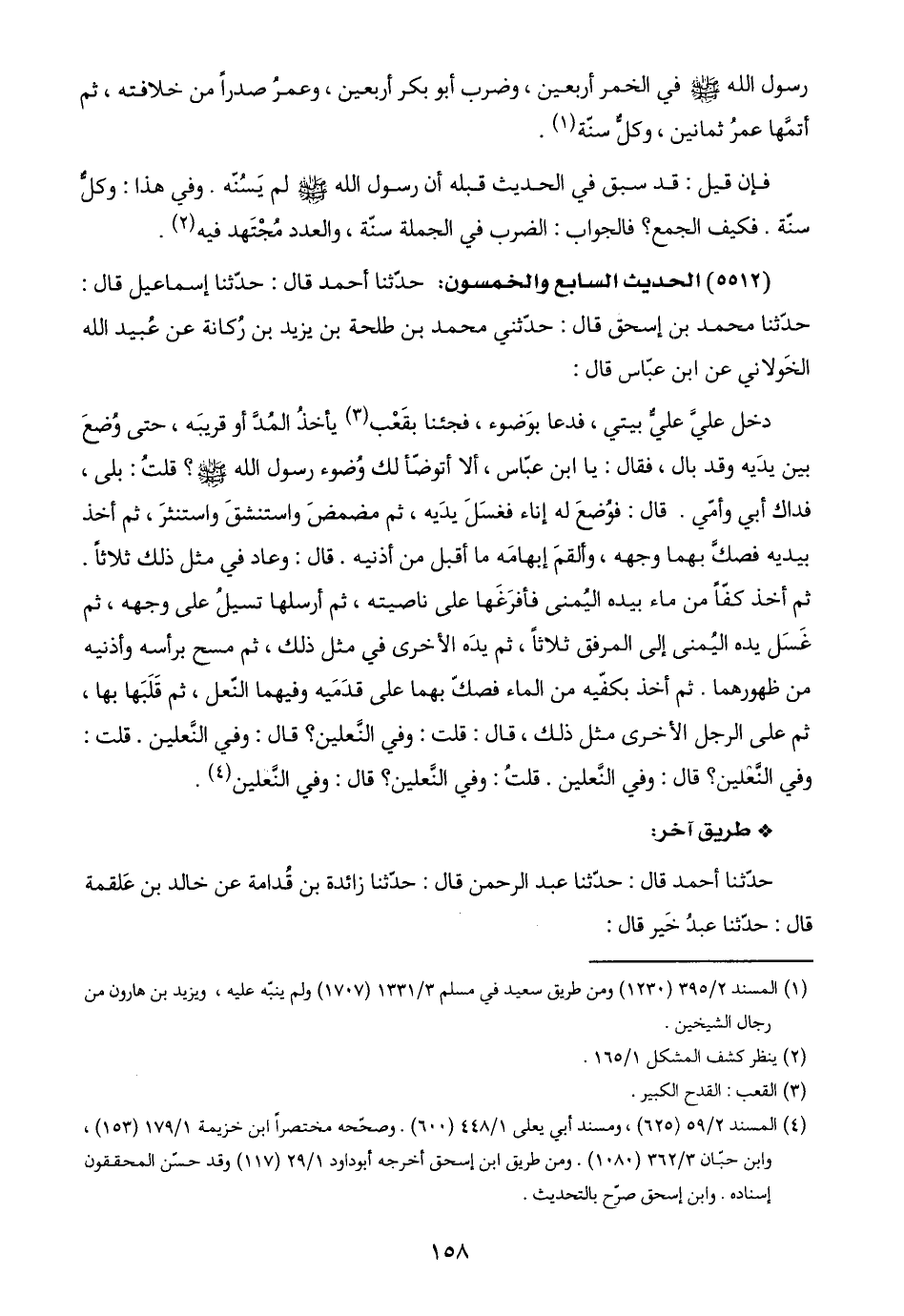 (٤) المسند ٢/ ٥٩ (٦٢٥)، ومسند أبي يعلى ١/ ٤٤٨ (٦٠٠). وصحّحه مختصرًا ابن خزيمة ١/ ١٧٩ (١٥٣)، وابن حبّان ٣/ ٣٦٢ (١٠٨٠). ومن طريق ابن إسحق أخرجه أبو داود ١/ ٢٩ (١١٧) وقد حسّن المحقّقون إسناده. وابن إسحق صرّح بالتحديث.