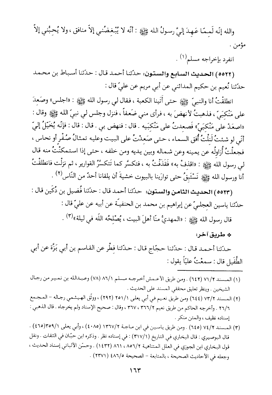 (٥٥٢٣) الحديث الثامن والستون: حدّثنا أحمد قال: حدّثنا فُضيل بن دُكَين قال: حدّثنا ياسين العِجليّ عن إبراهيم بن محمد بن الحنفيّة عن أبيه عن عليّ قال: