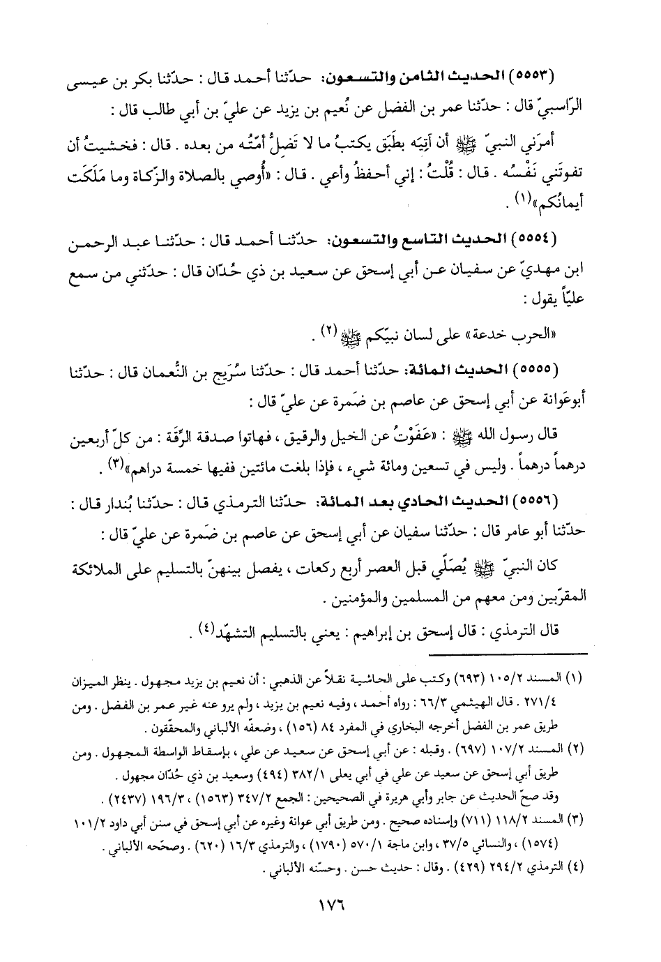 (٥٥٥٥) الحديث المائة: حدّثنا أحمد قال: حدّثنا سُرَيج بن النُّعمان قال: حدّثنا أبو عَوانة عن أبي إسحق عن عاصم بن ضَمرة عن عليّ قال: