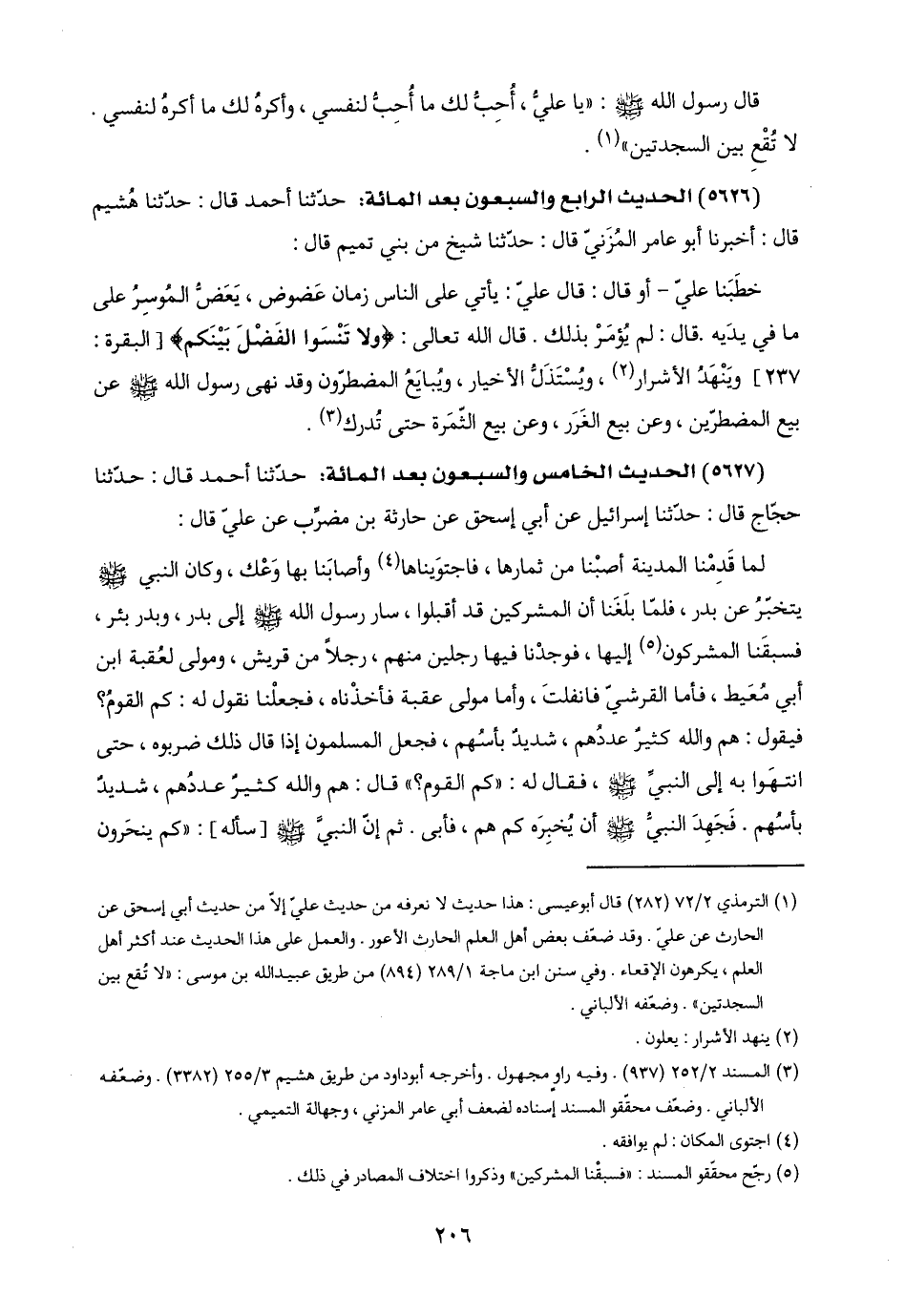 (٣) المسند ٢/ ٢٥٢ (٩٣٧). وفيه راوٍ مجهول. وأخرجه أبو داود من طريق هشيم ٣/ ٢٥٥ (٣٣٨٢). وضعّفه الألباني. وضعّف محقّقو المسند إسناده لضعف أبي عامر المزني، وجهالة التميمي.