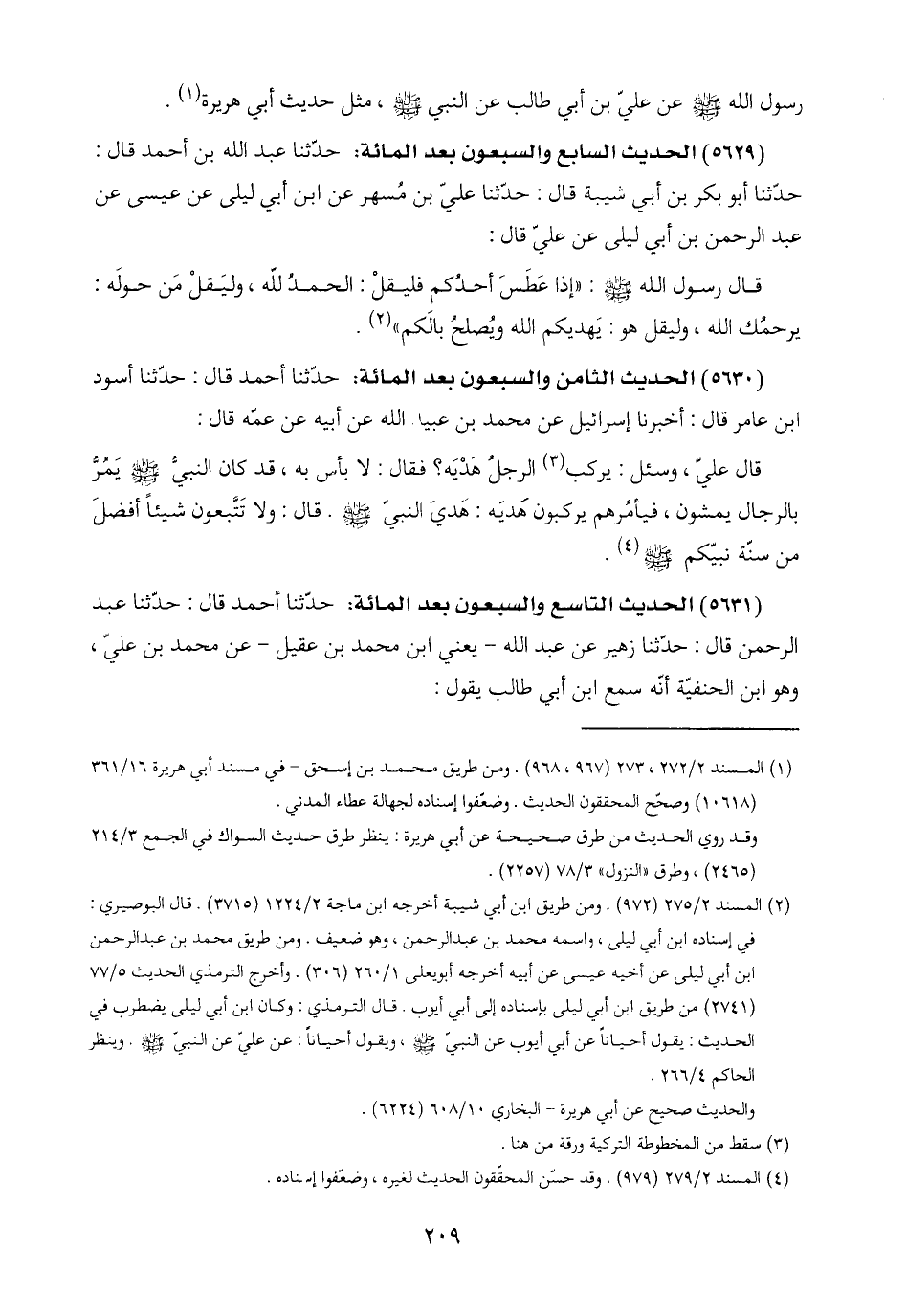 (٥٦٢٩) الحديث السابع والسبعون بعد المائة: حدّثنا عبد اللَّه بن أحمد قال: حدّثنا أبو بكر بن أبي شيبة قال: حدّثنا عليّ بن مُسهر عن ابن أبي ليلى عن عيسى عن عبد الرحمن بن أبي ليلى عن عليّ قال: