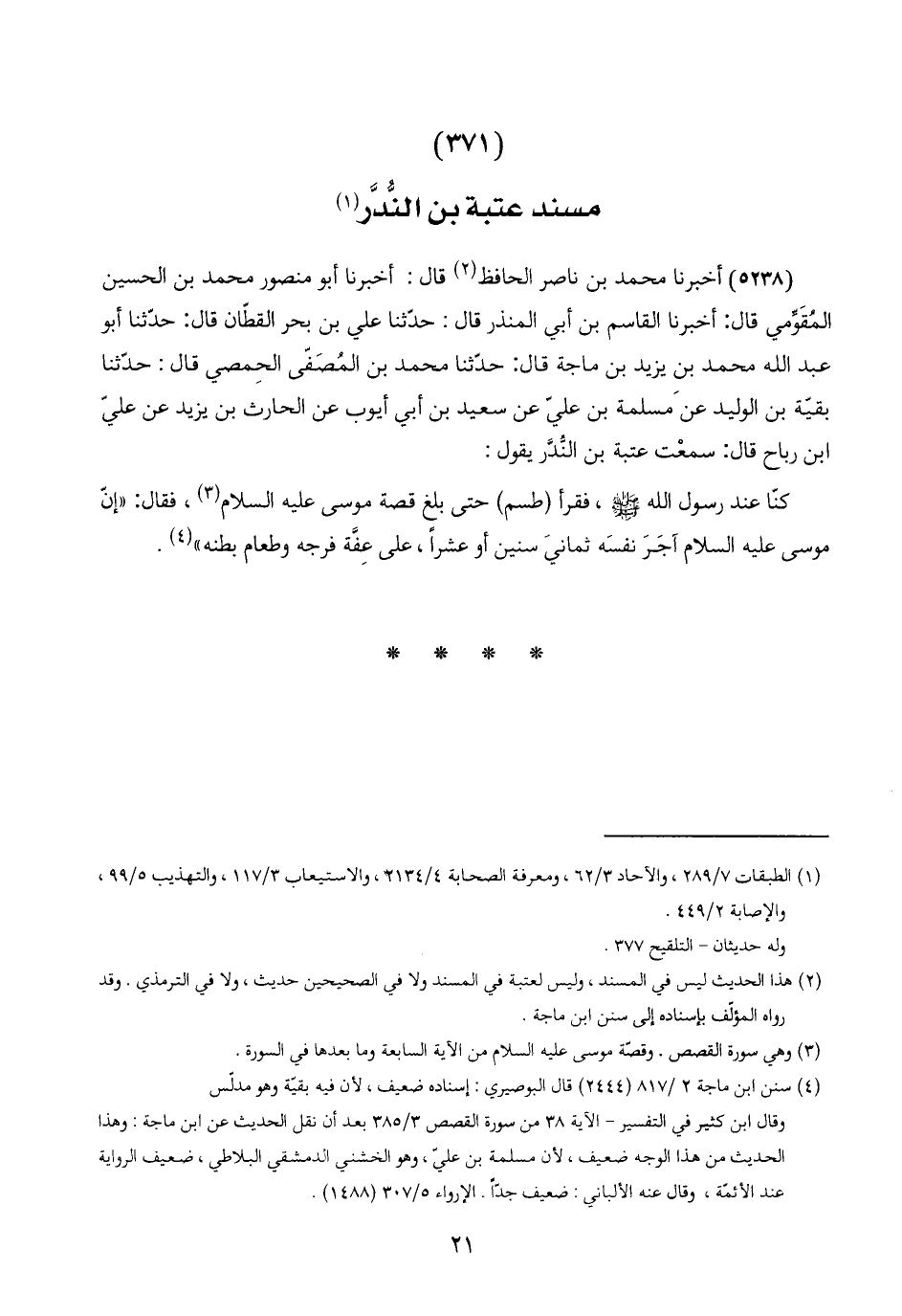 (٣٧١) مسند عتبة بن النُّدَّر (١)