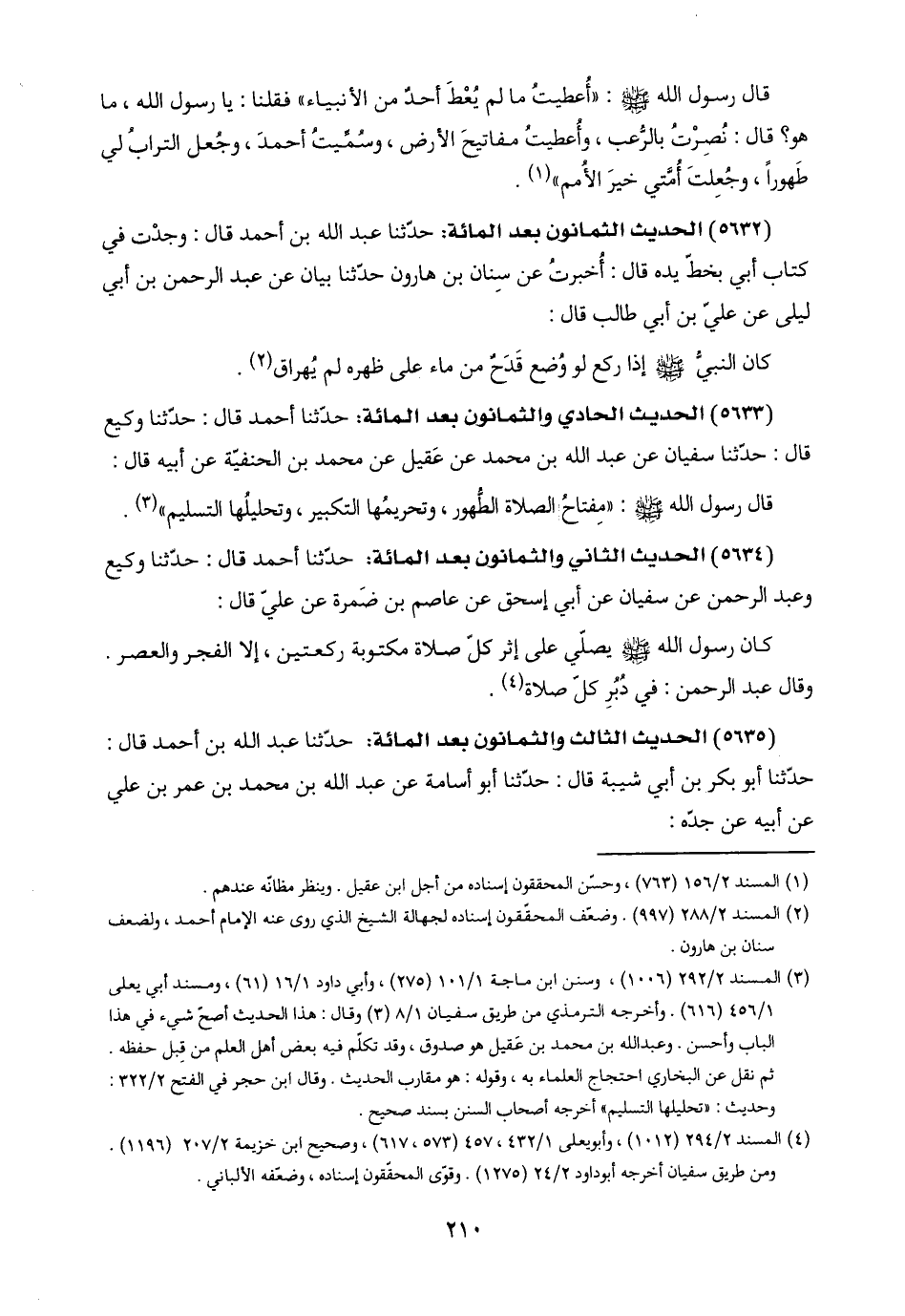 (٥٦٣٤) الحديث الثاني والثمانون بعد المائة: حدّثنا أحمد قال: حدّثنا وكيع وعبد الرحمن عن سفيان عن أبي إسحق عن عاصم بن ضَمرة عن عليّ قال: