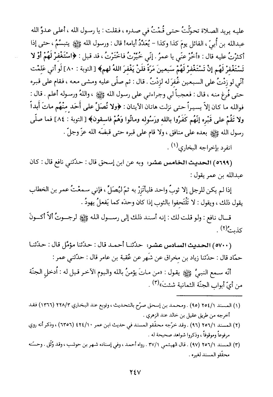 (٢) المسند ١/ ٢٥٦ (٩٦). وقد خرّجه محقّقو المسند في حديث ابن عمر ١٠/ ٤٢٤ (٦٣٥٦)، وذكر أنّه روي مرفوعًا وموقوفًا، وذكروا شواهد صحيحة له.