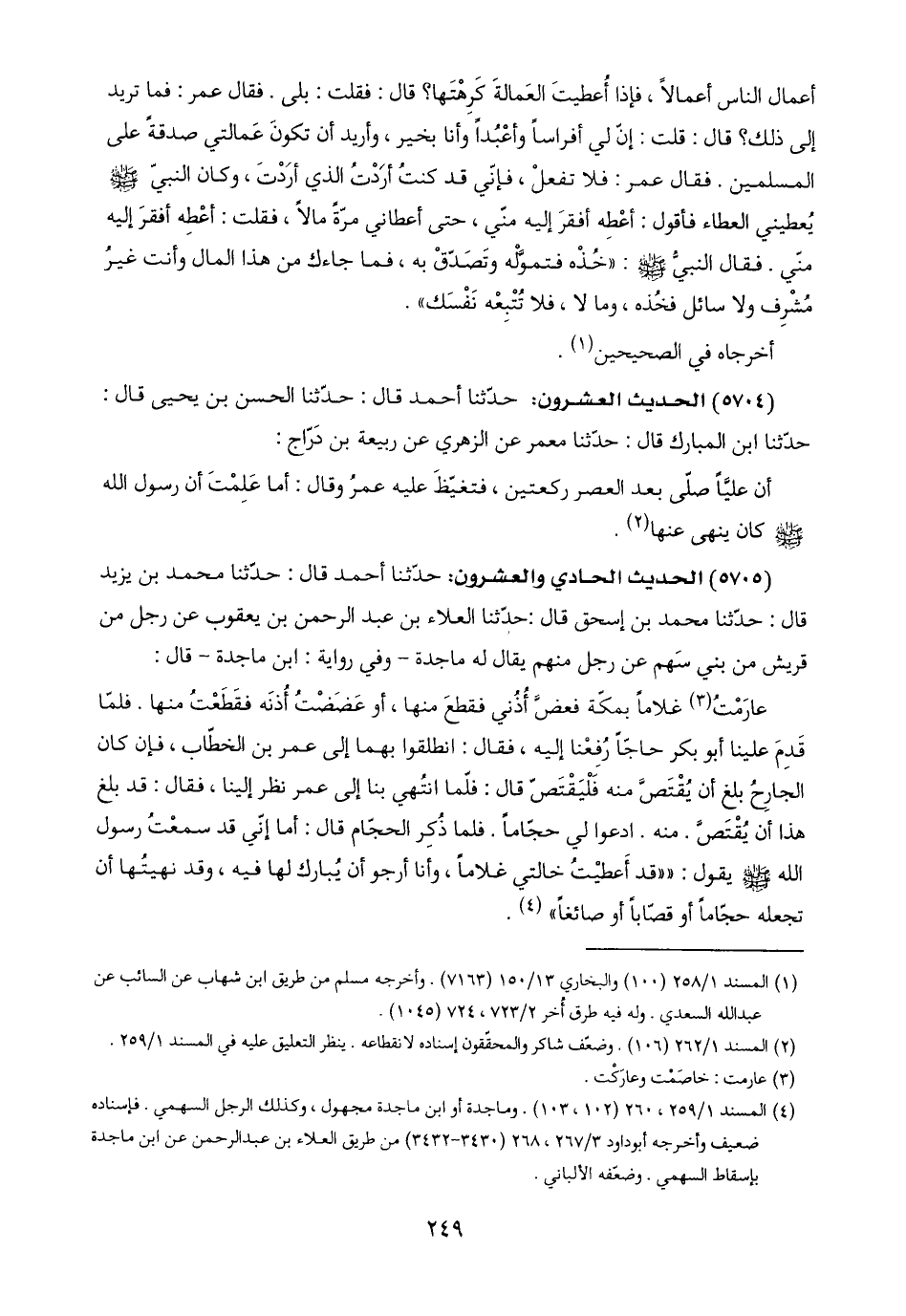 (٤) المسند ١/ ٢٥٩، ٢٦٠ (١٠٢، ١٠٣). وماجدة أو ابن ماجدة مجهول، وكذلك الرجل السهمي. فإسناده ضعيف وأخرجه أبو داود ٣/ ٢٦٧، ٢٦٨ (٣٤٣٠ - ٣٤٣٢) من طريق العلاء بن عبد الرحمن عن ابن ماجدة بإسقاط السهمي. وضعّفه الألباني.