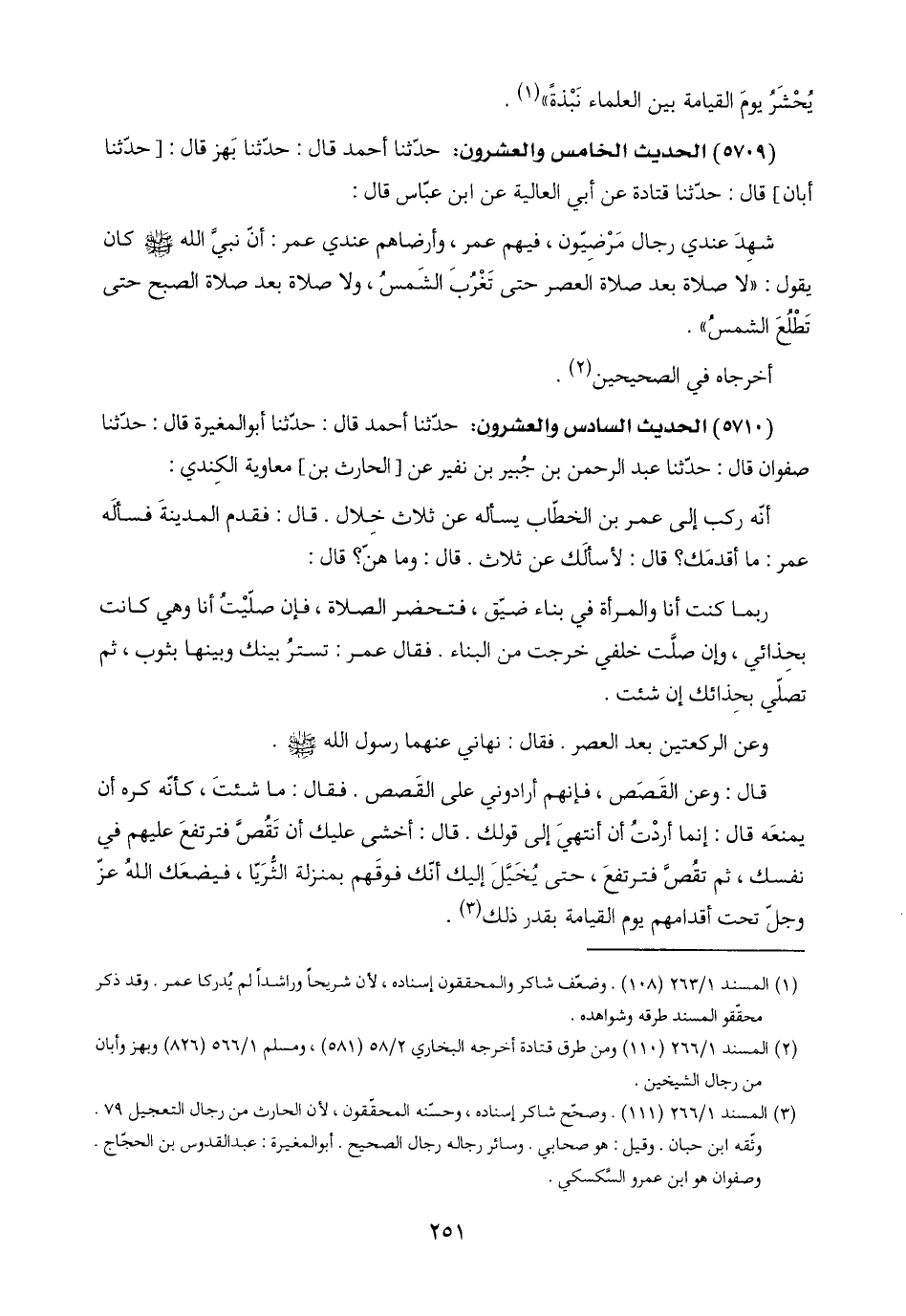 (١) المسند ١/ ٢٦٣ (١٠٨). وضعّف شاكر والمحققون إسناده، لأن شريحًا وراشدًا لم يُدركا عمر. وقد ذكر محقّقو المسند طرقه وشواهده.
