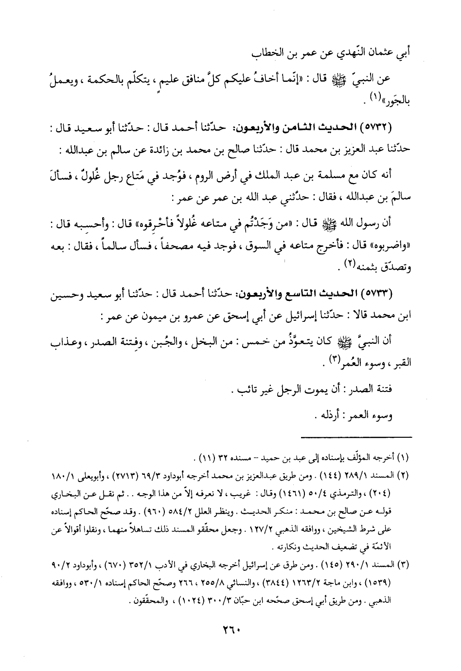(٥٧٣٣) الحديث التاسع والأربعون: حدّثنا أحمد قال: حدّثنا أبو سعيد وحسين ابن محمد قالا: حدّثنا إسرائيل عن أبي إسحق عن عمرو بن ميمون عن عمر:
