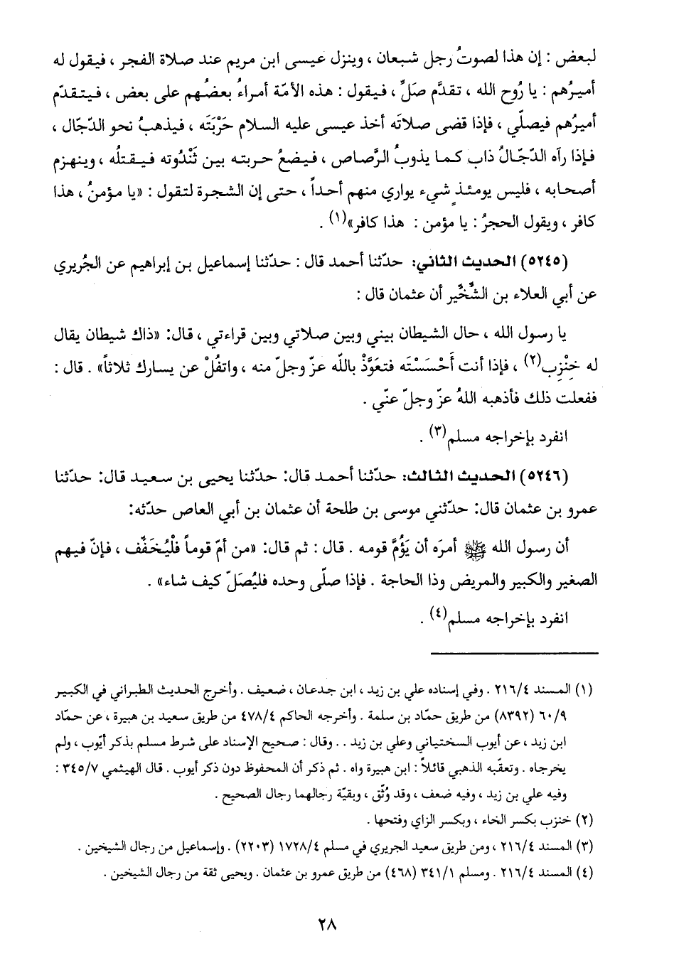 (٥٢٤٥) الحديث الثاني: حدّثنا أحمد قال: حدّثنا إسماعيل بن إبراهيم عن الجُريري عن أبي العلاء بن الشِّخِّير أن عثمان قال: