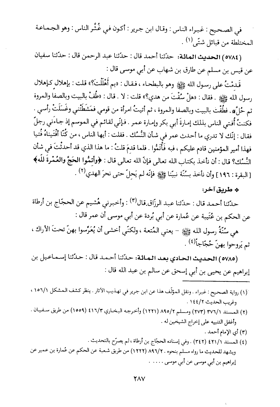 (٢) المسند ١/ ٣٧٦ (٢٧٣) ومسلم ٢/ ٨٩٥ (١٢٢١) وأخرجه البخاري ٣/ ٤١٦ (١٥٥٩) من طريق سفيان. وأغفل التنبيه على إخراج الشيخين له.