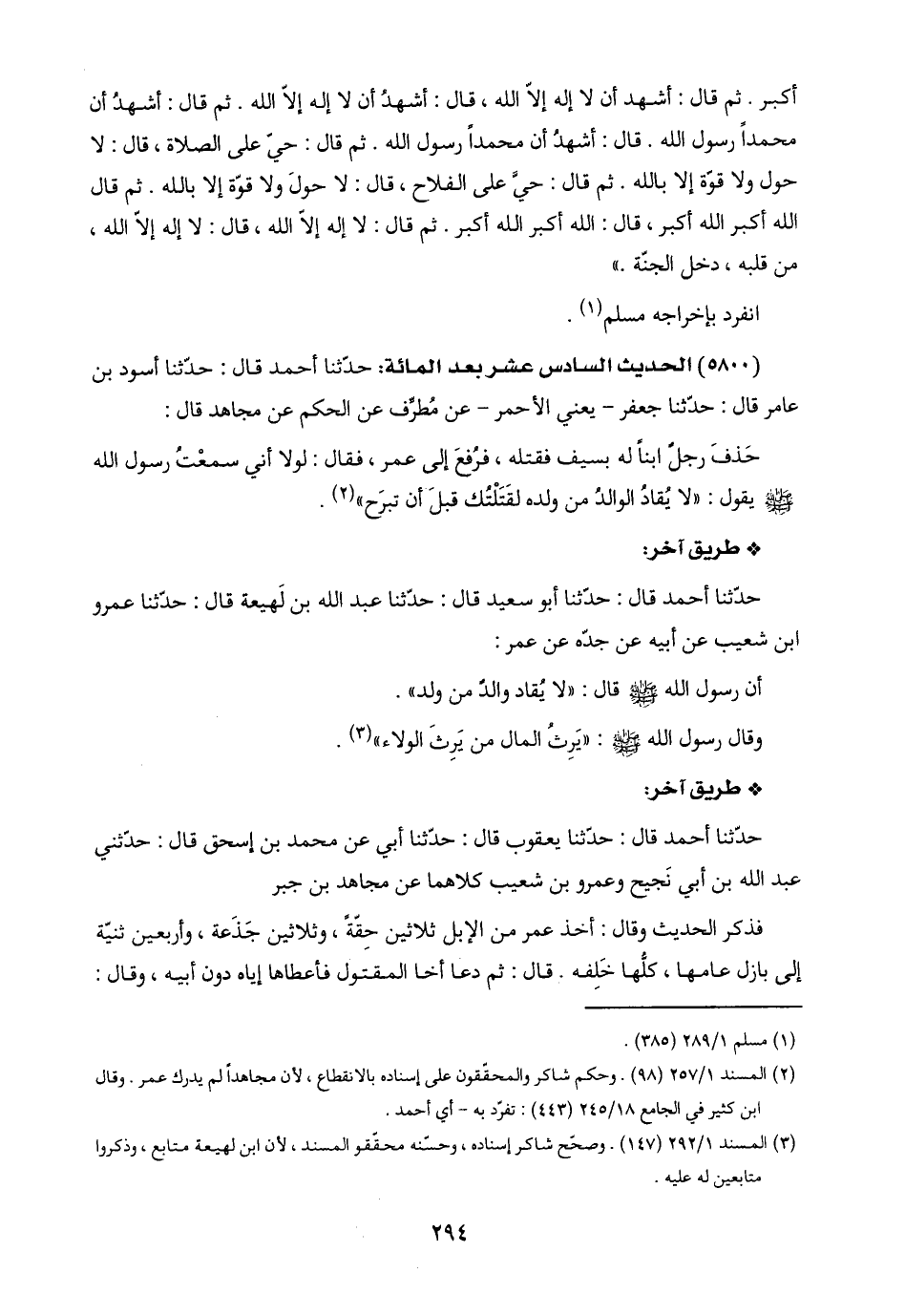 (٣) المسند ١/ ٢٩٢ (١٤٧). وصحّح شاكر إسناده، وحسّنه محقّقو المسند، لأن ابن لهيعة متابع، وذكروا متابعين له عليه.