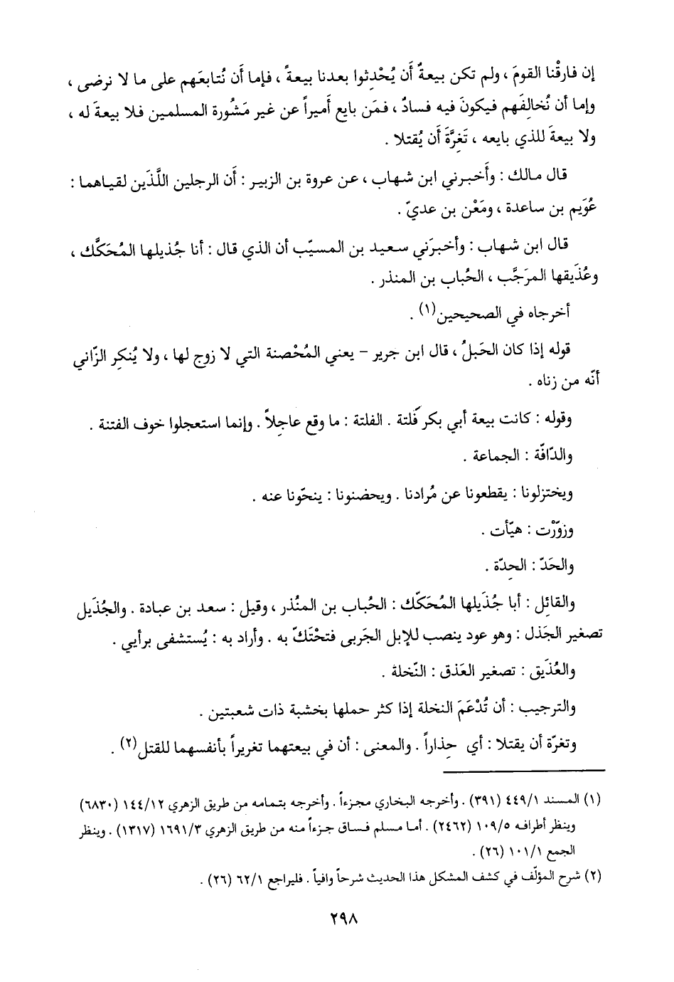 قال ابن شهاب: وأخبرَني سعيد بن المسيّب أن الذي قال: أنا جُذيلها المُحَكَّك، وعُذَيقها المرَجَّب، الحُباب بن المنذر.