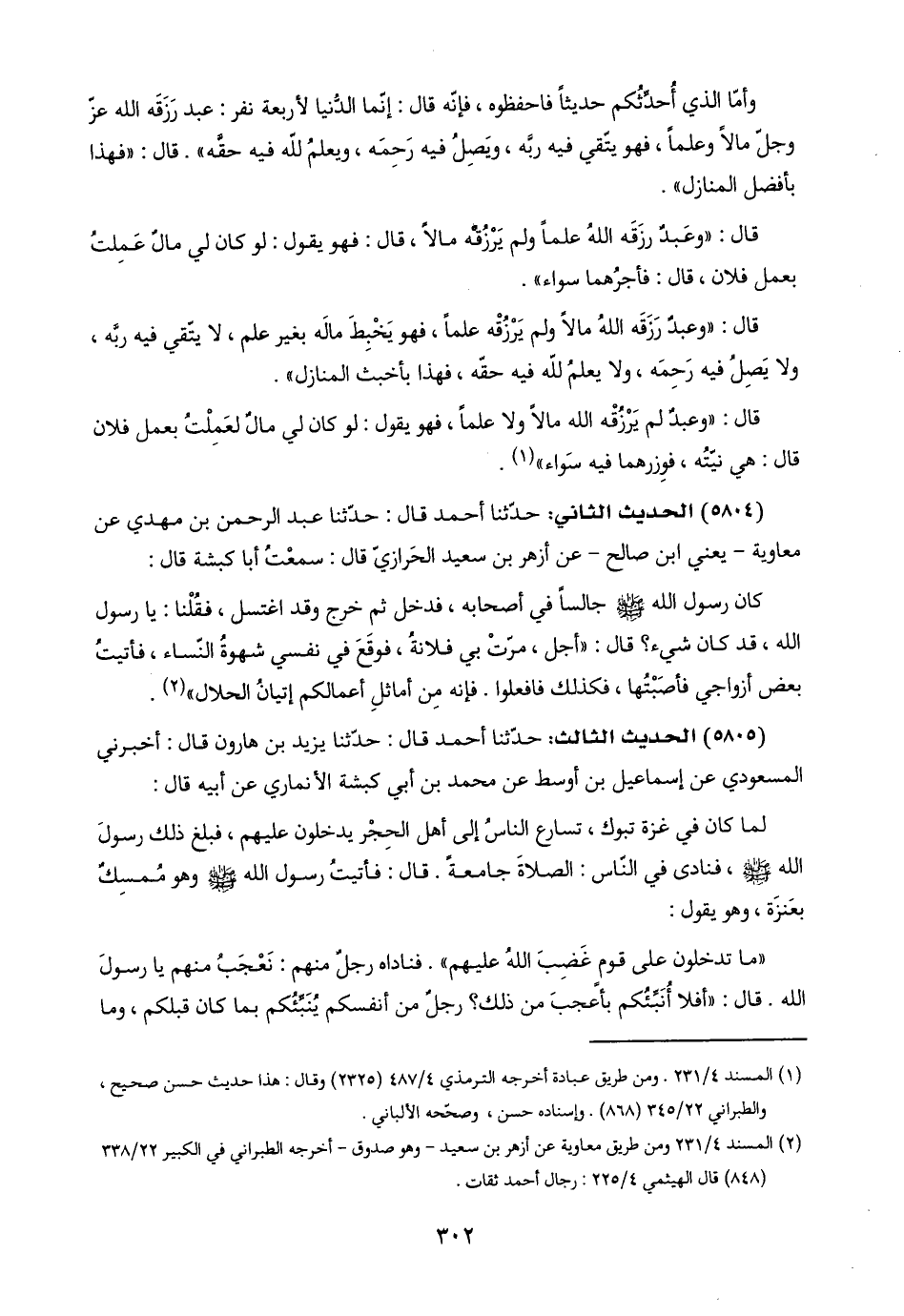 (٥٨٠٤) الحديث الثاني: حدّثنا أحمد قال: حدّثنا عبد الرحمن بن مهدي عن معاوية -يعني ابن صالح- عن أزهر بن سعيد الحَرازيّ قال: سمعْتُ أبا كبشة قال: