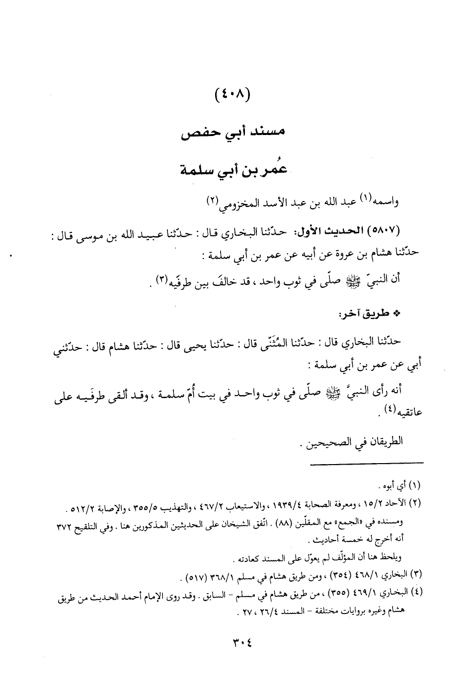 (٤٠٨) مسند أبي حفص عُمر بن أبي سلمة