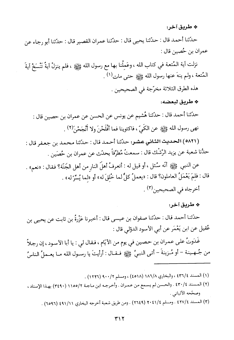 (٥٨٢١) الحديث الثاني عشر: حدّثنا أحمد قال: حدّثنا محمد بن جعفر قال: حدّثنا شعبة عن يزيد الرِّشْك قال: سمعتُ مُطرِّفًا يحدّث عن عمران بن حُصَين: