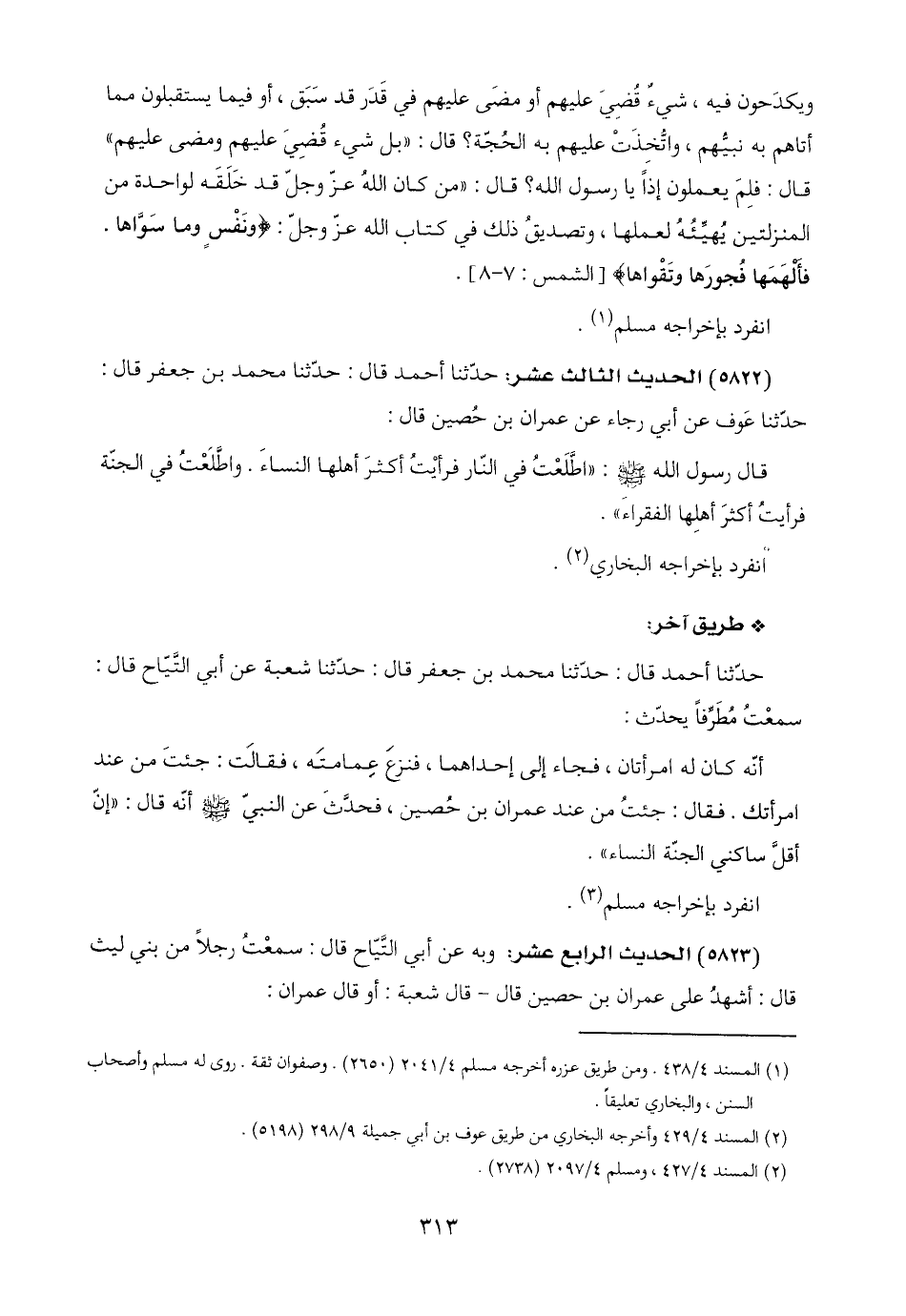 (٥٨٢٢) الحديث الثالث عشر: حدّثنا أحمد قال: حدّثنا محمد بن جعفر قال: حدّثنا عَوف عن أبي رجاء عن عمران بن حُصين قال: