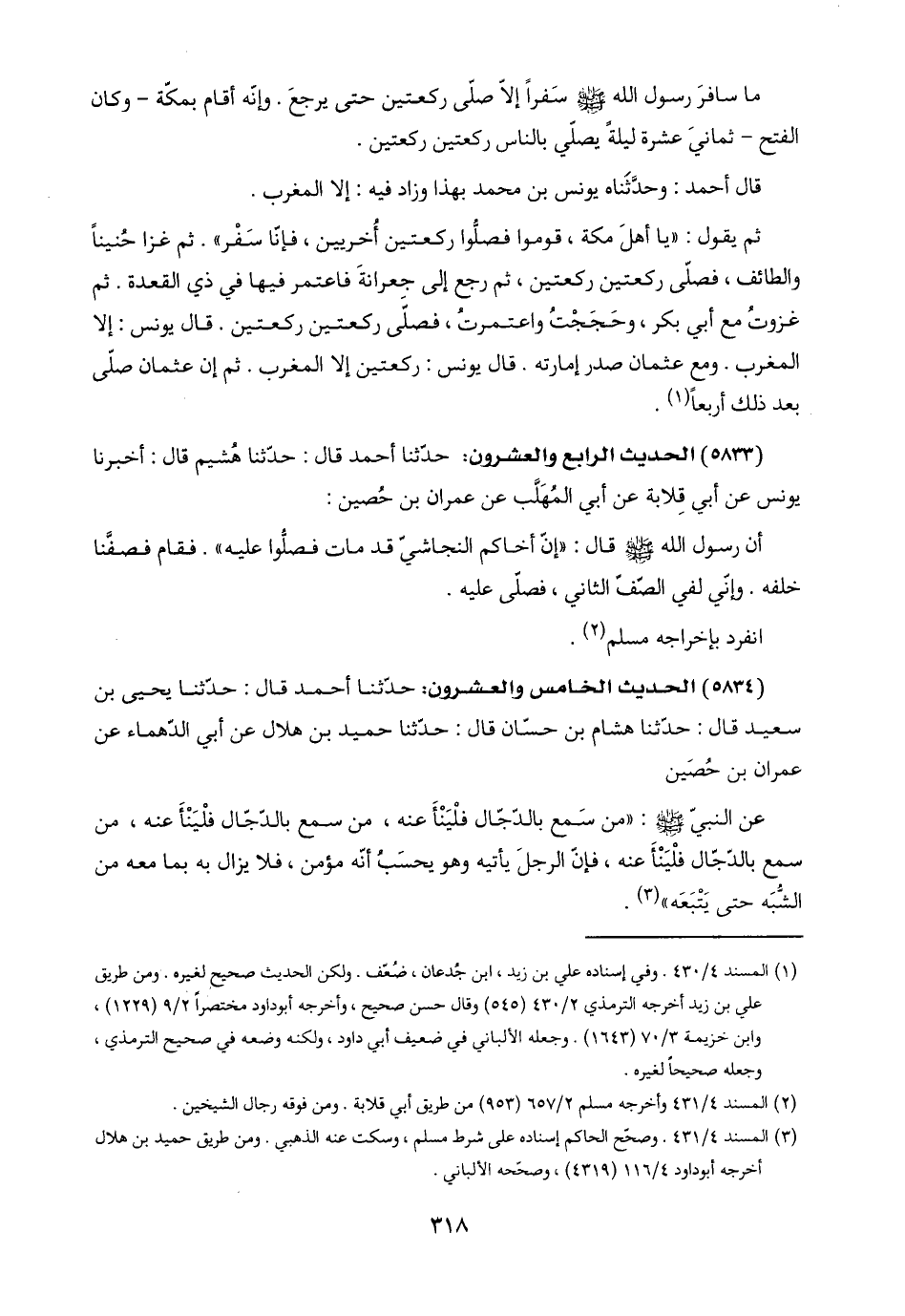 (٥٨٣٤) الحديث الخامس والعشرون: حدّثنا أحمد قال: حدّثنا يحيى بن سعيد قال: حدّثنا هشام بن حسّان قال: حدّثنا حميد بن هلال عن أبي الدّهماء عن عمران بن حُصَين: