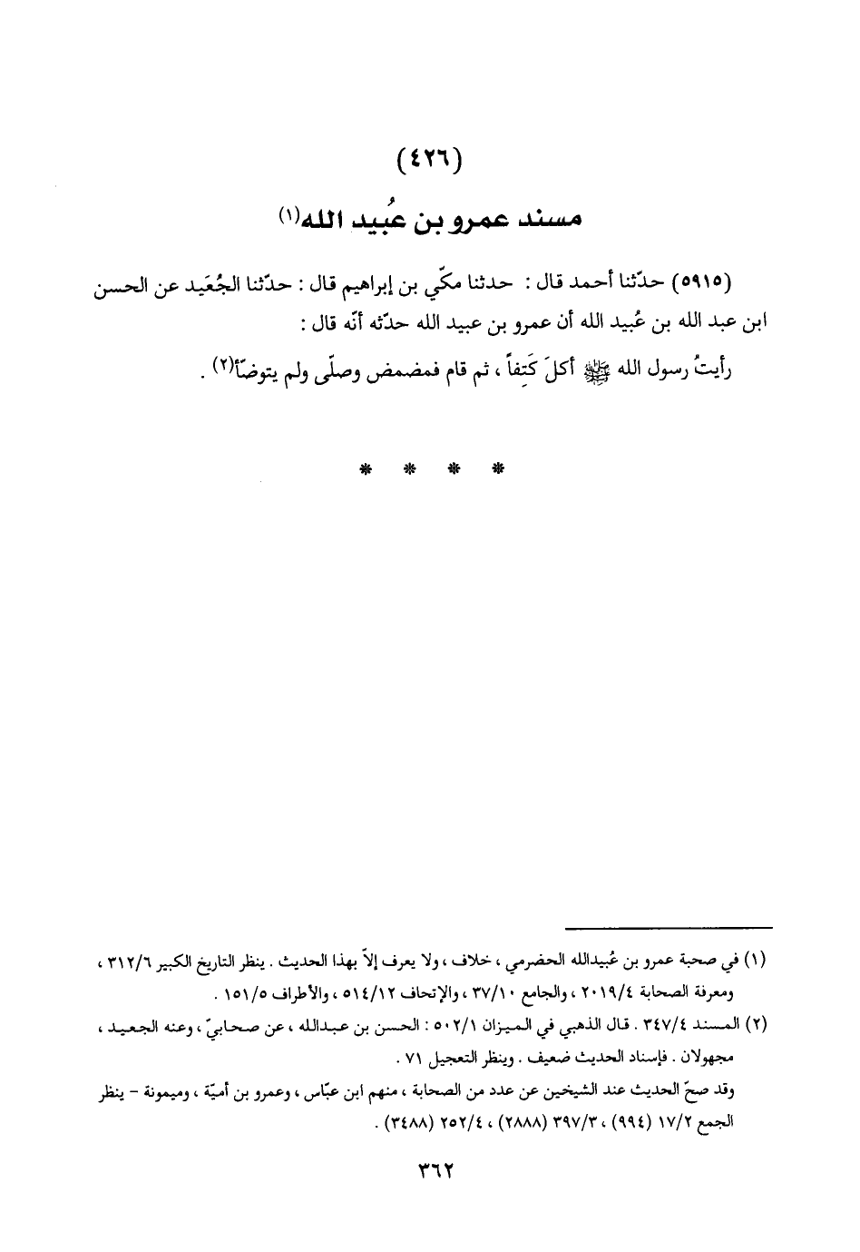 (٤٢٦) مسند عمرو بن عُبيد اللَّه (١)