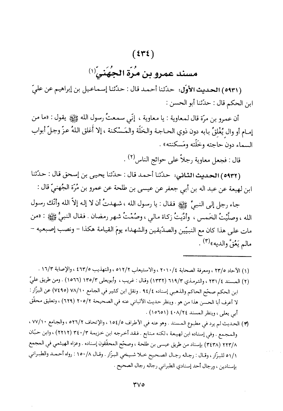 (٤٣٤) مسند عمرو بن مُرّة الجُهَنيّ (١)