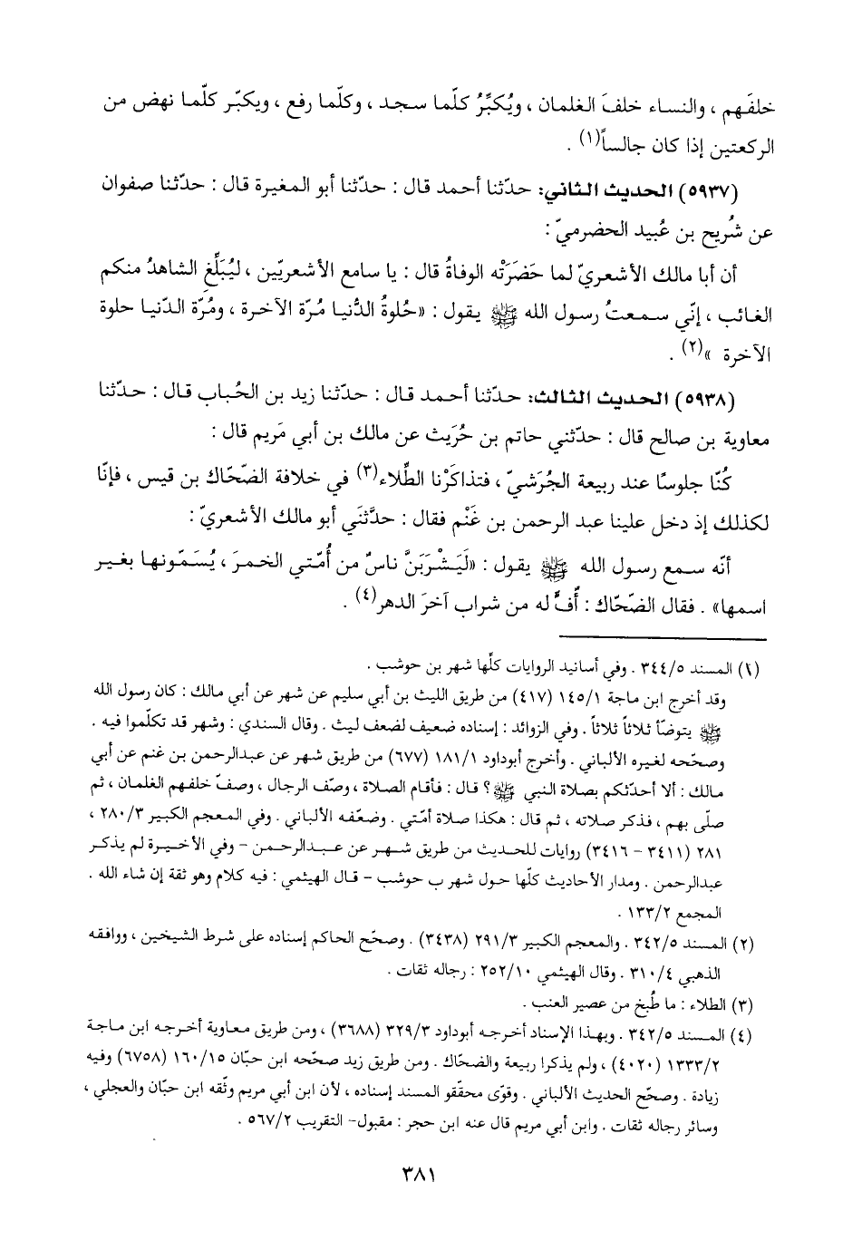 (٥٩٣٨) الحديث الثالث: حدّثنا أحمد قال: حدّثنا زيد بن الحُباب قال: حدّثنا معاوية بن صالح قال: حدّثني حاتم بن حُرَيث عن مالك بن أبي مَريم قال: