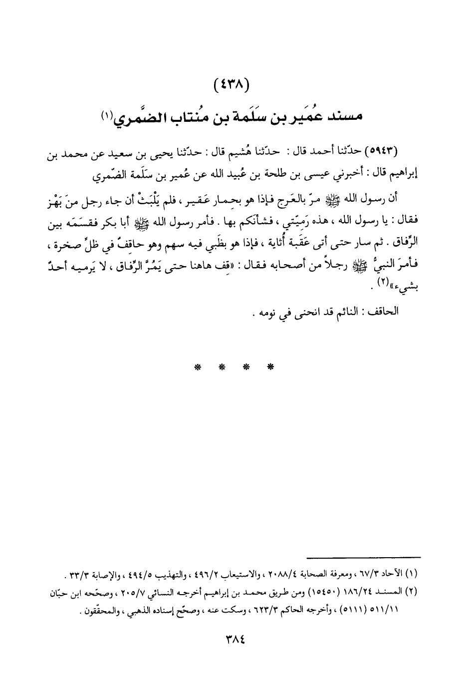 (٤٣٨) مسند عُمَير بن سَلَمة بن مُنتاب الضَّمري (١)