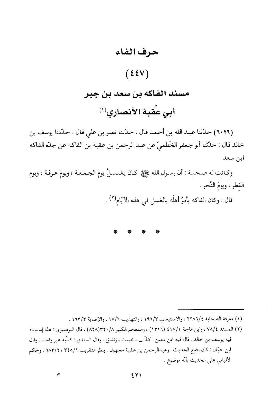 (٤٤٧) مسند الفاكه بن سعد بن جبر أبي عُقبة الأنصاري (١)