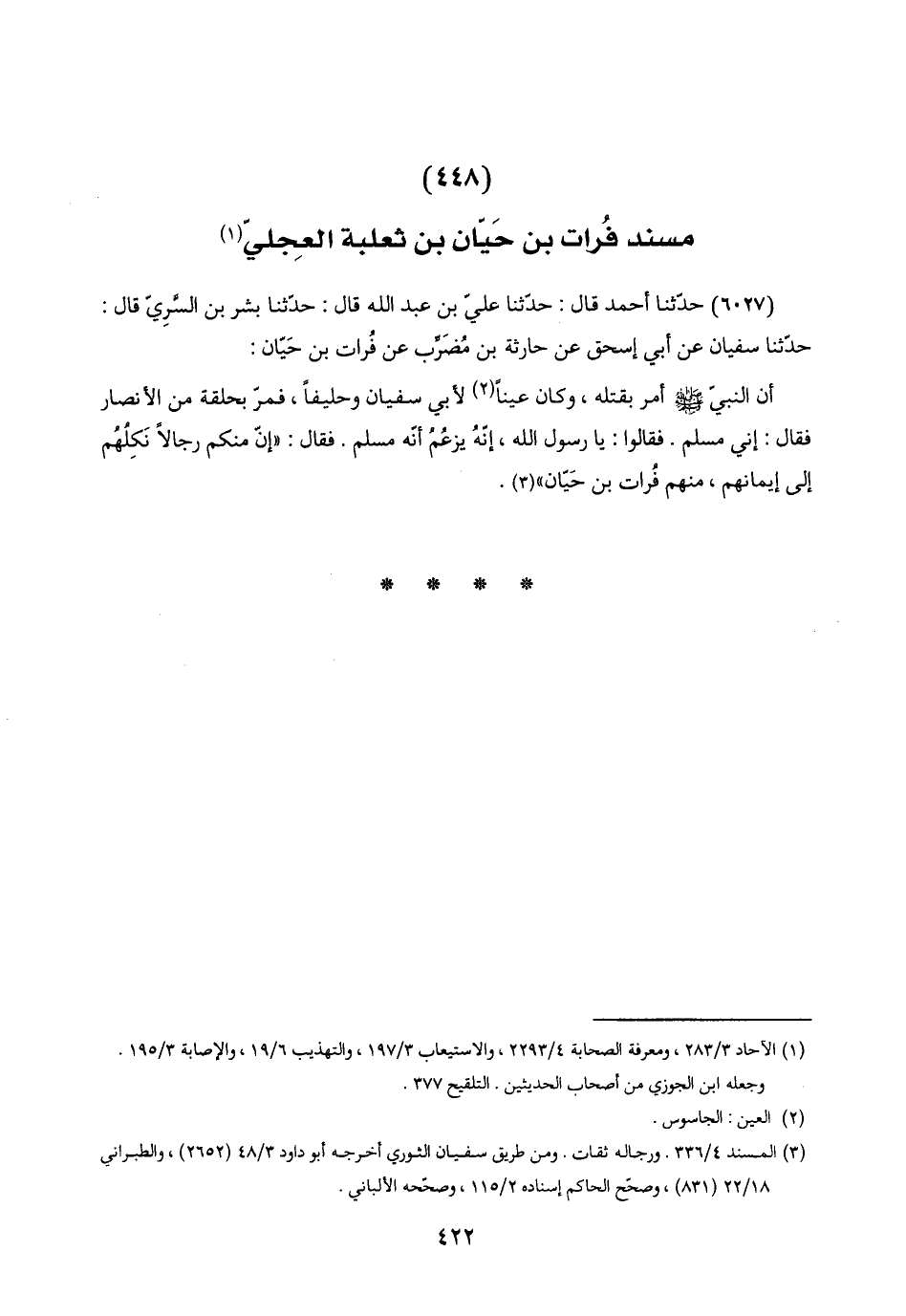 (٤٤٨) مسند فُرات بن حَيّان بن ثعلبة العِجليّ (١)
