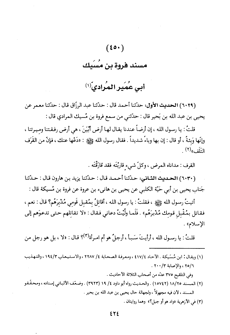 (٤٥٠) مسند فروة بن مُسَيك أبي عُمَير المُراديّ (١)