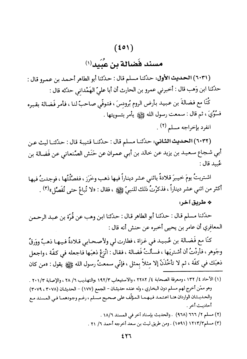 (٤٥١) مسند فَضالة بن عُبَيد (١)