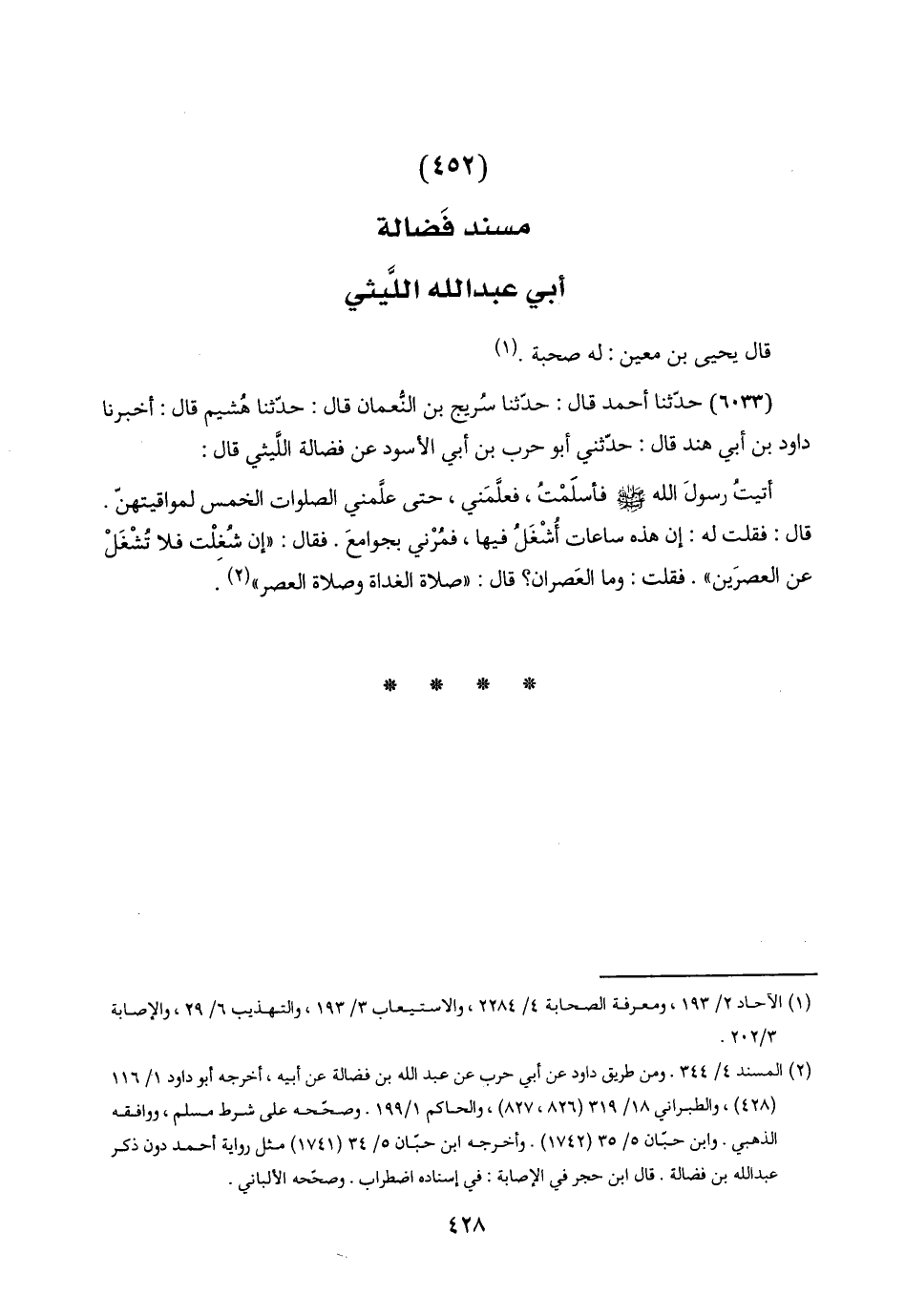 (٤٥٢) مسند فَضالة أبي عبد اللَّه اللَّيثي